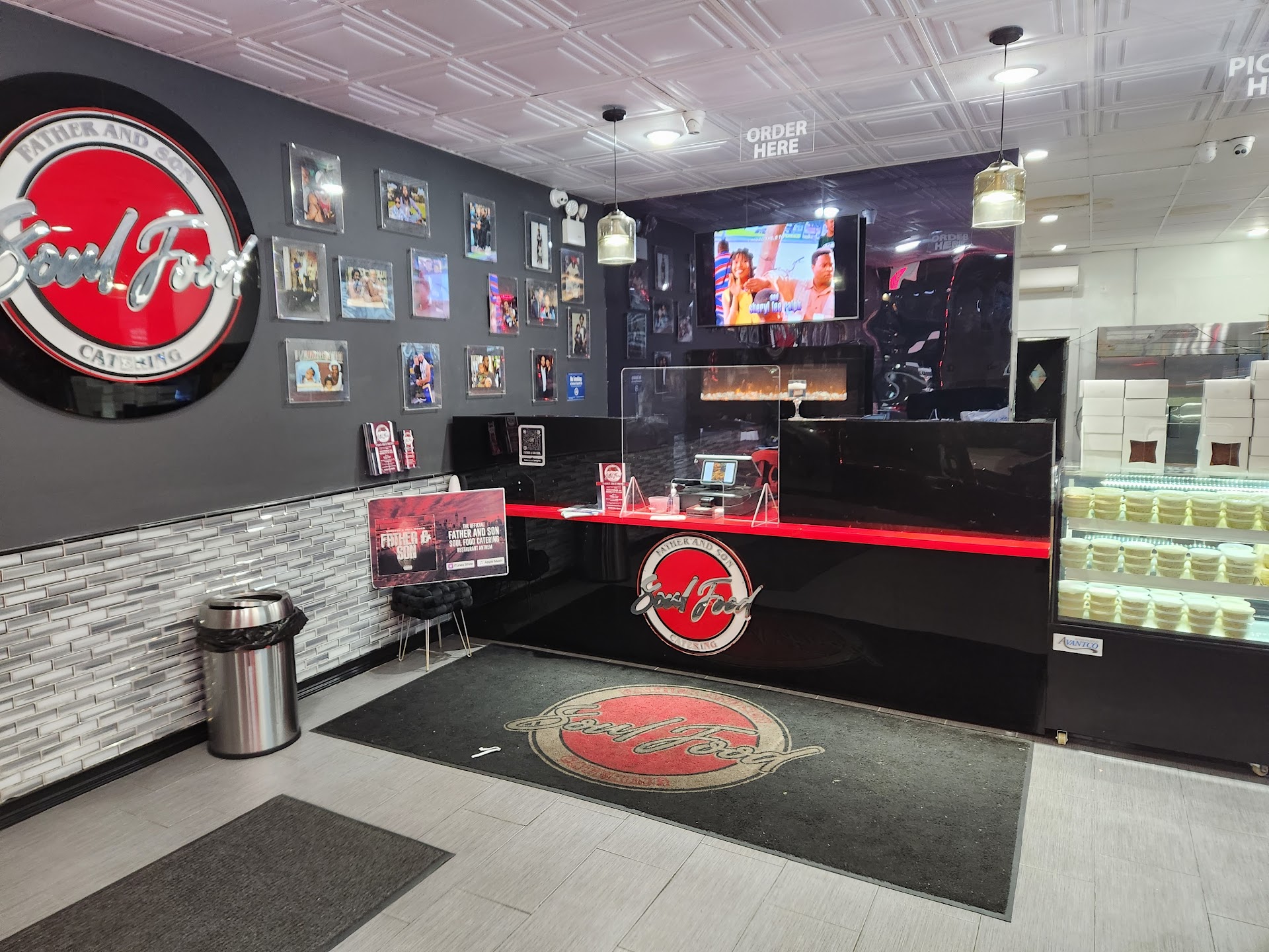 If I could give Father &Son 10 stars based on customer service alone, I would! We were greeted immediately when we walked in and asked if it was our first time, then got a a warm "welcome" when we replied yes. They were busy, it was a Saturday afternoon around four and it's only take out. The establishment was clean, and not terribly crowded; there were a few Uber eats/grub hub delivery persons waiting for orders and a few other patrons waiting to place their orders as well. Once we decided what we wanted, I had the chance to ask the gentlemen who greeted us if he was the father of the son,and he said "the son" with a smile. We stepped off to the side to wait like everyone else, and not 60 seconds passed and a young lady came from the kitchen And gave us a small container with yams, macnchz, and a sweet chili sauce drenched wing! We were confused when she was trying to hand them to us and so grateful for the sample. It was a very nice touch! The yams and Mac n cheese were ok, and the wing was nicely coated in the sauce, but I'm not really a fan of spicy food so I only tasted it. I also don't eat much chicken any more do it would've been awesome to get another dude it something else. I'm not complaining - that was one of the best gestures I've ever received at a local restaurant and it's the reason I'd give 10 stars if I could. We waited for about 10 minutes for our fried catfish and sides of cabbage, yams, Mac and cheese and collard greens. The food was ok, nothing extra ordinary, just delicious as you'd expect. I wasn't a fan of the collard greens, to me they were overcooked and had a peppery spicy note that I'm not fond of. Overall, I would visit again if I were in the area and would recommend if you're looking for an establishment that makes you feel appreciated and valued. Oh, the big boy pink lemonade?!? Took it home and froze it...sweet...
