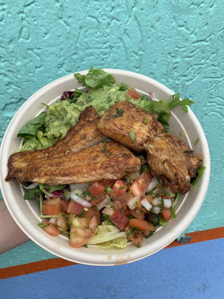It comes with a huge seared piece of tilapia that sits atop a bowl of mainly iceberg lettuce and arugula. While the protein portion was pretty sizeable, it was fishier than I would've liked. The salad comes with a dressing on the side to add some flavor to the mixed greens. My partner ordered a grilled steak burrito and also thought it was serviceable but not terribly exciting. Folks seem to rave about their tacos, so I might order those if I find...