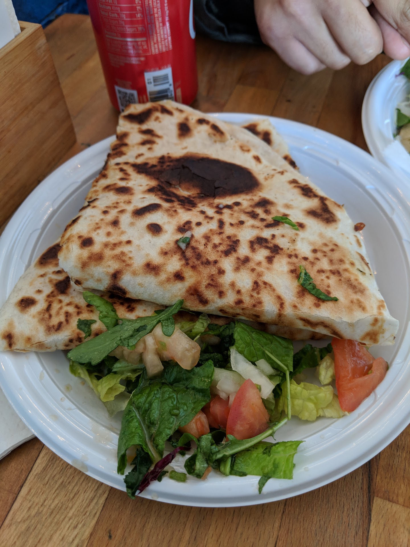 I ordered the lunch special, 2 tacos and a soda (forgot the price). I got the fish tacos and the pastor. I must say I really enjoyed the fish taco I thought it was delicious. The sauce it comes with was very good, not spicy. The pastor tacos were delicious also. I really like that the tortillas arnt super soft, they have a slight crunch to them. My boyfriend got the chicken quesadilla. It was packed with meat ! And the cheese they use is perfect (I'm not a cheese lover/expert so I don't know what kind it was)