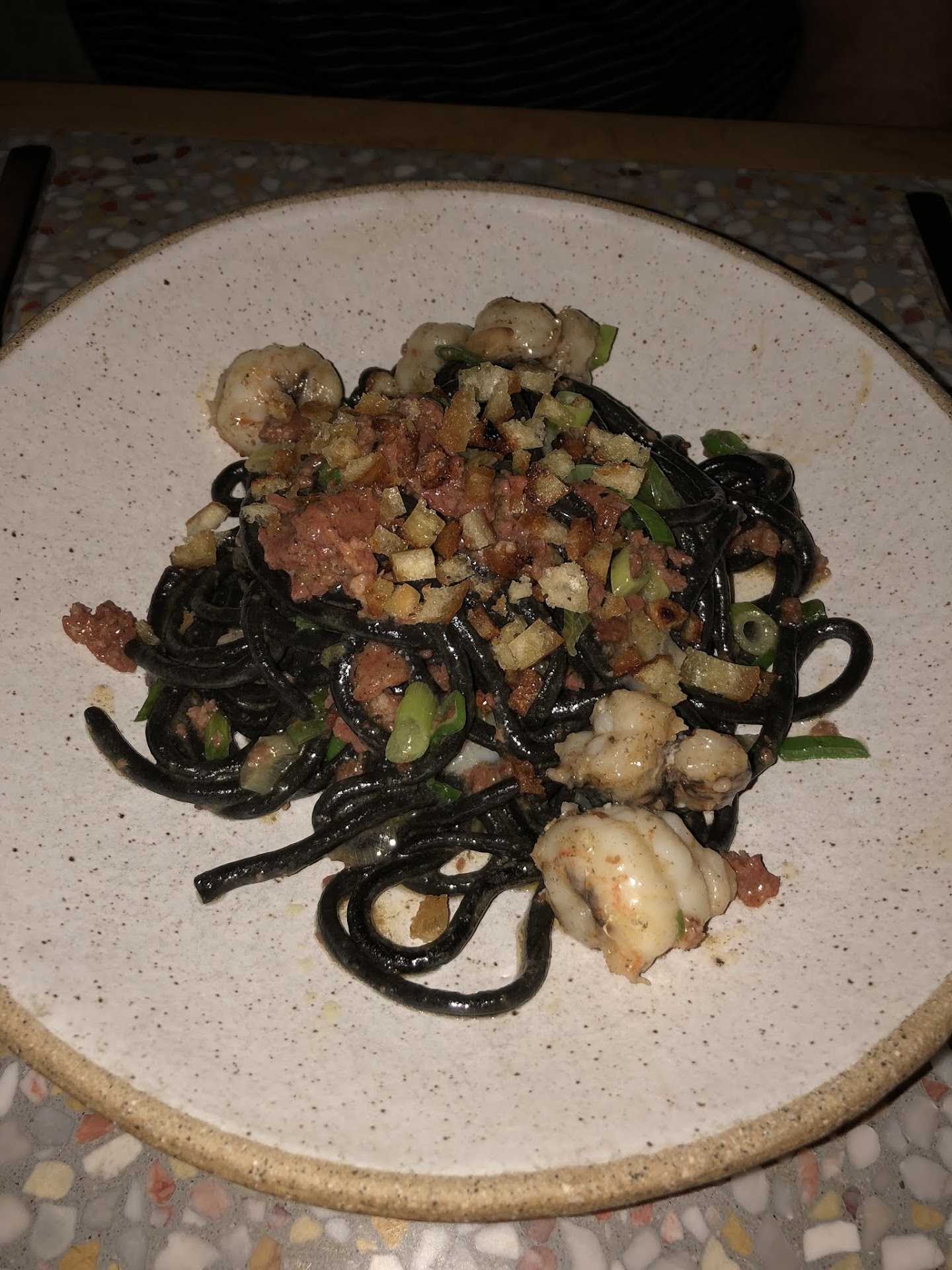 As per the recommendation, I went with the rabbit bolognese over pasta verde. Totally blew me away. I hadn't had rabbit ragu that good since I had it in Tuscany at least 7 years ago. My husband had the rock shrimp with the black squid ink pasta. It tasted like the sea. I will be dreaming of those pastas for a long time!