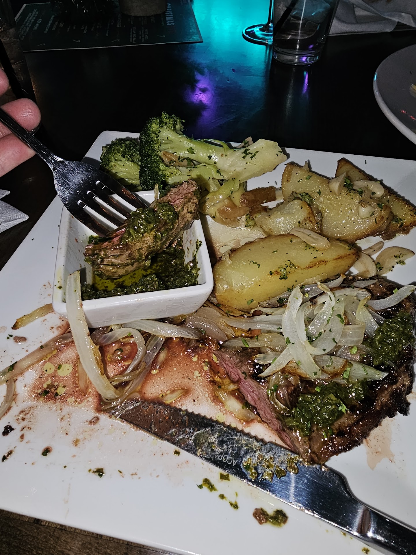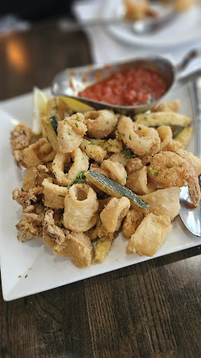 I came here for valentines day with the hopes of trying something different for a change, and overall the experience was pleasant. While they ran a special for a vday menu of 65 a person with free champagne, that unfortunately got canceled and they didn’t notify customers in advance so that was disappointing given the good deal. Nonetheless, the atmosphere is really nice, definitely has a nice greek Mediterranean feel , it felt like summer for a moment which was nice. I just hate how cold I felt each time the door opened and closed since its just one dining room. The regular menu has decent options from platters to finger foods, nice dips, salads, and hearty mains. The problem with the menu is that their wine list is non existent, they apologized a million times for not having even the Zoe greek wines in house or basic ones like Josh Cellar, but their pitcher of sangria really made up for it. They should invest in a restocked wine menu if they want to elevate the dining experience since certain wines pair well with fish and red meats on their menu. The waitress acts as the hostess here so they run around like chickens with no head. I also saw ticket numbers got mixed up when they delivered wrong entrees to people. You can tell they really take their jobs seriously as you never saw them standing around doing nothing. We tried their zucchini chips which were divine, lightly fried with good seasoning and yummy tzatziki dip, good start to the night. We then had pistachio crusted lamb chops with sherry wine sauce, let me tell you something, im still thinking about that sauce several days later it is DIVINE. i want to dip everything in their and the pistachio crumbs are sheer genius. We also had steak skewers platter, the platter has good value since you get salad a dip fries and bread or veggies, it was easy to share. I liked the seasoning on their skewers but I wanted the meat medium, it felt too well done. It did have a nice smoky flavor though from the grill. Fries were decent, i would of added more salt . The spicy feta dip was spectacular, loved the crushed red pepper. The greek salad had yummy olives. At the end of the night we tried their cucumber margaritas, it was really good- refreshing and slightly sour , I would drink this in the summer for sure! We also got their triple chocolate cake, we loved it because it was very decadent from their dark chocolate layers. However you would expect them to have baklava and maybe some other pastries with pistachios , instead they had only tiramisu, gelato and chocolate cake. Their pistachio dessert was out of stock . Their $7 cappuccino wasn’t worth it, it barely had any foam and too much cinnamon. This place needs to pull their inventory together if they want to get a five star experience for their customers. Otherwise, the tasty food makes up for everything else that’s lacking. I would return here in the summer time to see what else they...