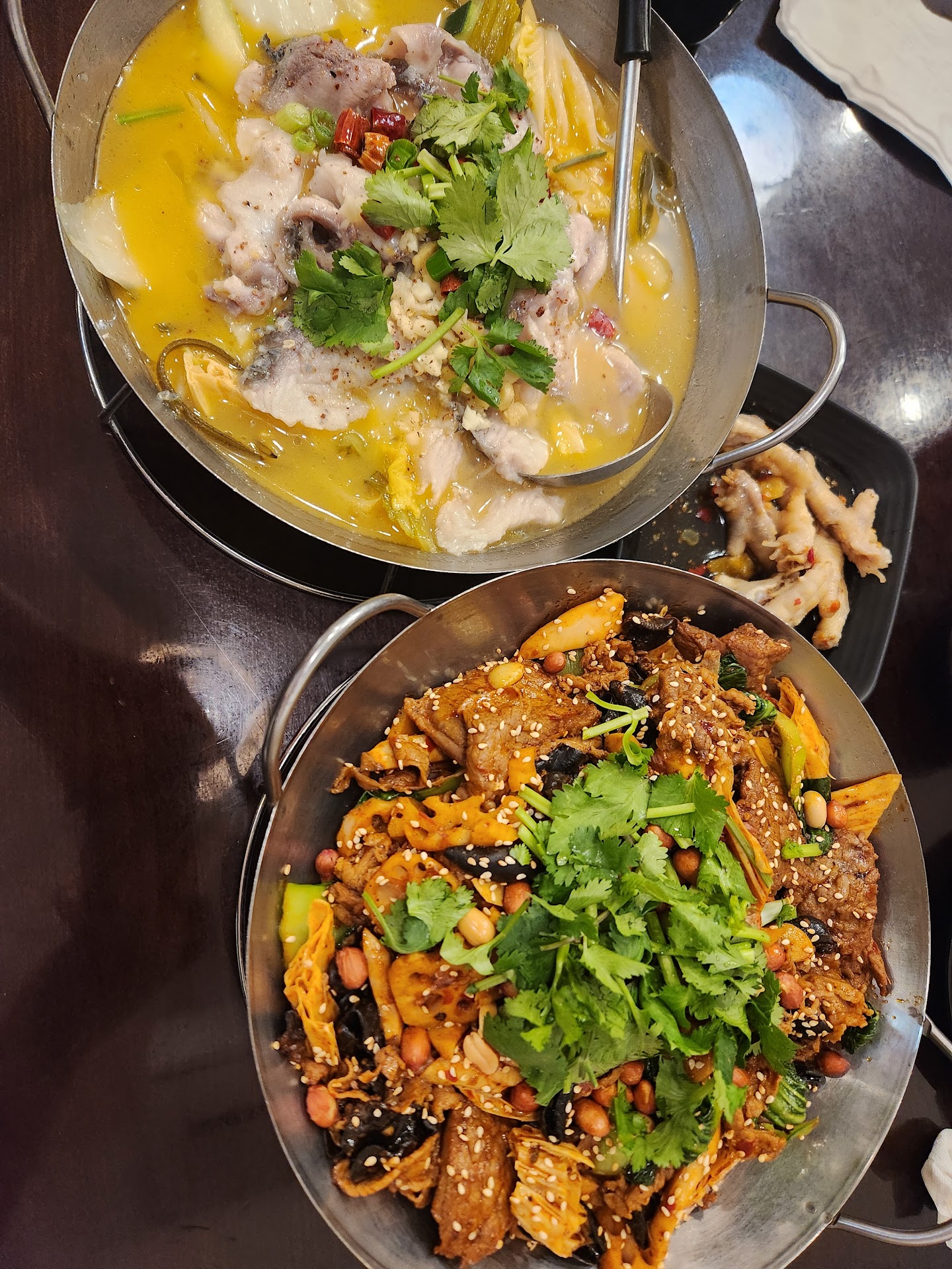 Read moreThe food was delicious and the portions were big. The meal comes with complimentary chicken feet. We had a dry pot with 2 meats and 4 veggies (and it came with peanuts and cilantro) and a small order of hot and sour fish (which looked like a medium portion!). Everything was very flavorful! You can choose your spice level for dry pot. White rice is complimentary and you can ask for more.