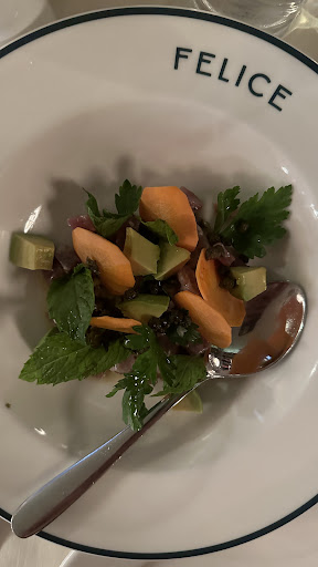 The food at Felice restaurant was nothing short of exceptional. Each dish was expertly prepared, bursting with authentic flavors, and presented beautifully. From the creamy pasta dishes to the perfectly cooked seafood, every bite was a delightful journey for the taste buds. The ingredients were fresh, and the chefs clearly had a deep understanding of Italian cuisine.