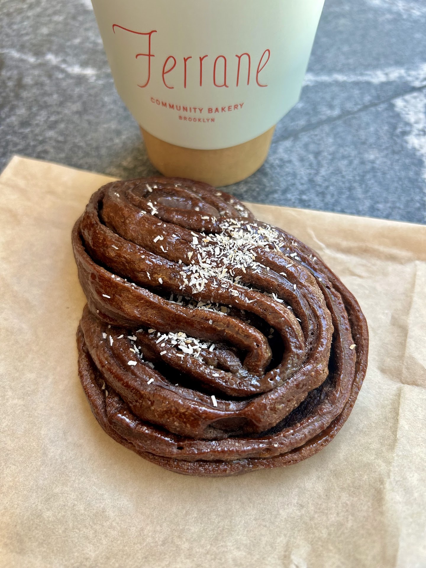 The chocolate coconut bun is not too sweet, possibly made with dark cocoa? They also have cinnamon buns but I didnāt get them this time.