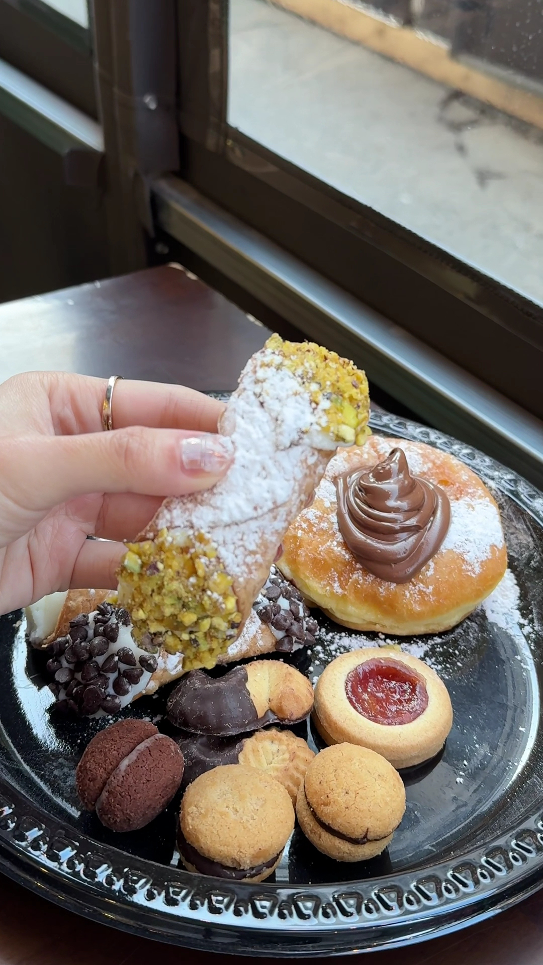 ļ¼Cannoli, Bacio di Dama, Chocolate Bacio di Dama, S-shaped Cookies I also got a box of assorted Italian pastries and I enjoyed all of them. My favourite is the pistachio cannoli beyond a doubt ā crispy shell, hearty fillings, and topped with many pistachios.