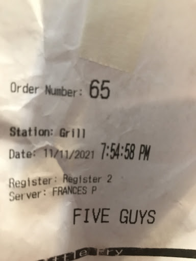 Ā Ā Ā Read moreStarted off as a bad experience but the amazing Managers rectified the whole situation. First time ordering a delivery order from the Five Guys app around 5pm. Around 6pm I called the store asking about my order. Was told my order was sitting there for 30 mins waiting to be picked up. My brother stopped by and picked up the order. Fries came and were not fully cooked and milkshake was missing. Called the store and spoke to a manager that was very apologetic because this shouldnāt have happened as he was training new staff. He offered to fix my ordered but I still had to go back to pick it up. While this was happening, I left a compliant on the app and another manager called me within minutes. He was so very apologetic as well. He asked for my order number, called the store and had them re-created my whole order, along with a gift card for my inconvenience. Really appreciate the exceptional customer service. ...