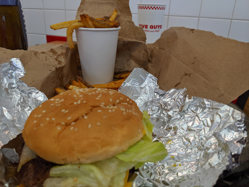 Read moreGreat experience , great place , super friendly and nice employees , burgers are delicious , normal size , they fill you well - Cheese Burger is around $9.90currently , I guess this is standard diameter for burgers . Fries are completely different from McDonald's one , which are crunchy outside and sofr inside , Five guys fries are soft and particially with the little bit of the potato skin ( great for fiber ) and that's what I love about them . What was very impressive is the Great selection on Coca cola sodas and water products (Dasani) , Sprite and dr.Pepper , you can get Coke regular or diet , with or without caffeine , Vanilla , Cherry , Cherry-Vanilla , Orange and many more . I guess due to pandemic , peanuts 🥜 are gone , but the burgers are still there .Great place for quick lunch , dinner or whatever...