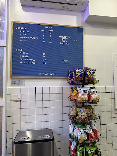 Read moreFlat Out Burger feels like a community staple. It’s a tasty smash burger with a house sauce that really makes the entire burger. Paul, the owner, is a super nice guy and passionate about the restaurant. The menu is very affordable, $7 for a single patty classic burger. The most expensive menu item are the veggie loaded fries for $14.50. My vegetarian friends also rave about their veggie burgers and vegetarian friendly options. I usually get take out from here because the only option for seating are four bar stools. It’s a great and delicious spot to enjoy a...