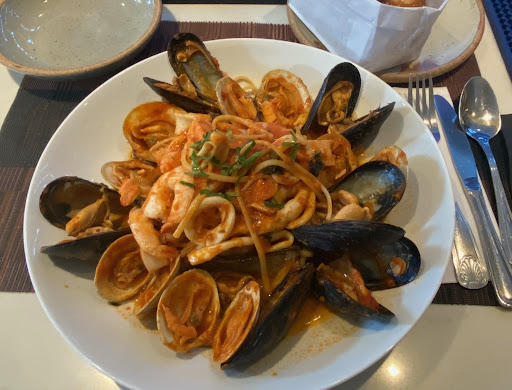 The seafood tasted fresh and not fishy. And the sauce, the sauce tasted like it was patiently cooked by an authentic Italian chef, was so tasty and not watery at all with the noodles cooked al dente. The spice was just right, but I did tell them that it should be much spicier for me next time.