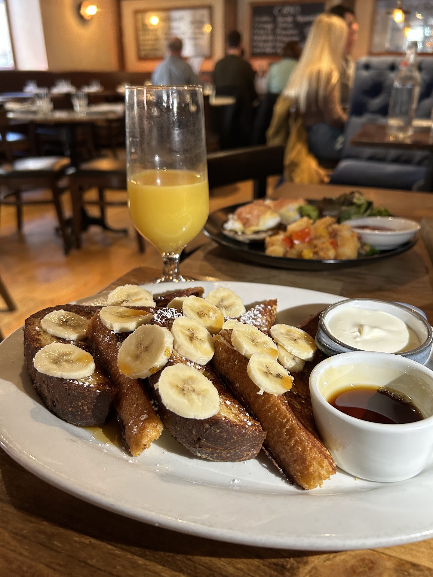 ft: -brioche french toast: this was our favorite! it had the best fluffy texture, and the bananas on top were a great match. delicious. -eggs benedict: eggs were runny and the english muffin was toasted correctly. i loved it! -cobb salad: the first thing i noticed is that the dressing added the perfect amount of extra flavor and didn't go overboard. i loved the combination of ingredients in the salad. -crostini: came with 3: 1) burrata, olive oil and salt 2) whipped ricotta pesto 3)mascarpone and clover honey. each were slightly different from each other, and all tasted amazingly. i definitely liked the mascarpone and clover honey. it's such a simply dish yet so delicious.