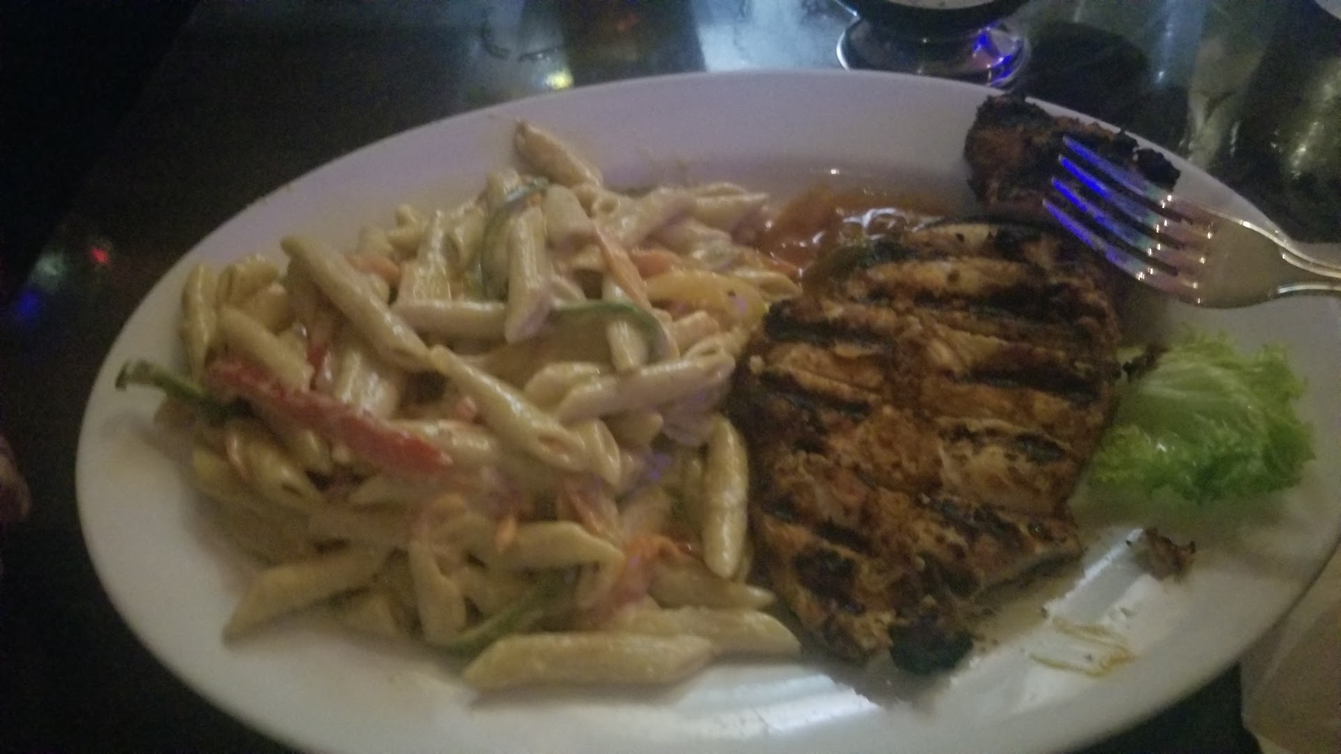 FOOD: Everything was a strange mix of either over-salted/seasoned food or severely lacking flavor. I ordered the Rasta pasta (w/grilled shrimp - Rasta pasta was alright, a little too salty. The 5 shrimp that came with it is what really needed it. My boyfriend ordered the jerk chicken w/rice and peas - the chicken itself couldâve been tasty but couldnât really tell because it was literally drowned in some of the hottest jerk sauce Iâve had. We witnessed 2 separate guests coughing and complaining about the spice; one woman spit up her food into a plastic bag at her table after first getting it all over her shirt.