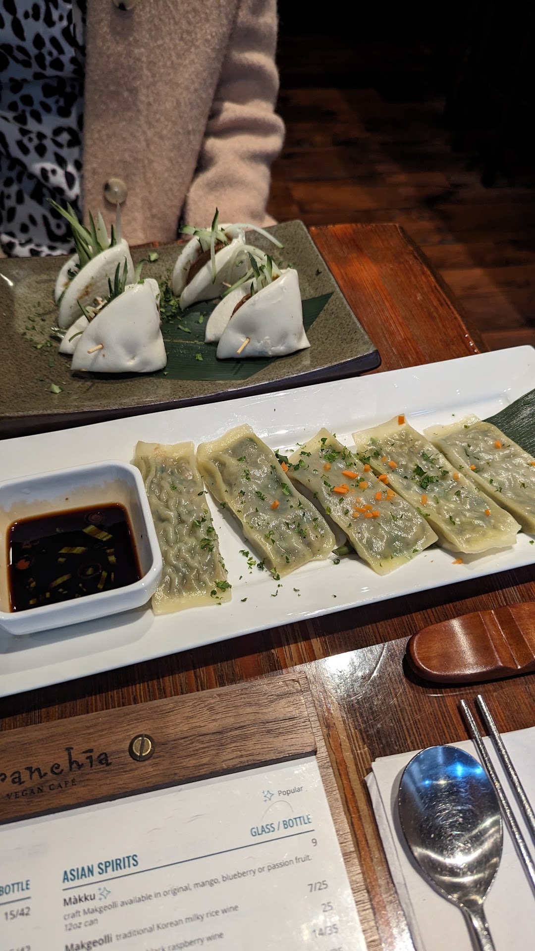 Read moreThis review is a long time coming. I'm born and raised in NYC and have been vegan for 16 years. I've tried vegan restaurants all throughout the city, probably all the major ones. Franchia Vegan Café is definitely in my top 2 for my favorite vegan restaurant of all. The portions are fantastic—during a time where most high end restaurants are serving tiny dishes and charging an arm and a leg—but most importantly, the flavors are amazing every single time! I brought my mom here recently for her birthday, she's Hispanic and had never tried this kind of food before, and she was obsessed! I do need to try more of the menu, but my all time favorite entree is the Penang Noodles. It is literally the best vegan noodle soup bowl in this entire city! Love the creamy curry and spicy flavors as well as the toppings with tofu skin, tofu chunks, eggplant and vegan chicken. Also obsessed with the volcano roll, dragon roll, and tofu skin rolls. They're rolls in general are fantastic and in my opinion, better than a certain vegan sushi restaurant that will not be named. The baby dumplings are another great item, the scallion pancakes, the braised tofu with kabocha pumpkin, the hot stone chicken teriyaki plate, and more! They have an incredibly extensive menu so you're sure to find something you love! And lastly, the atmosphere is so calming with its low lighting and calm zen like music. They truly offer a nice respite from the chaos...