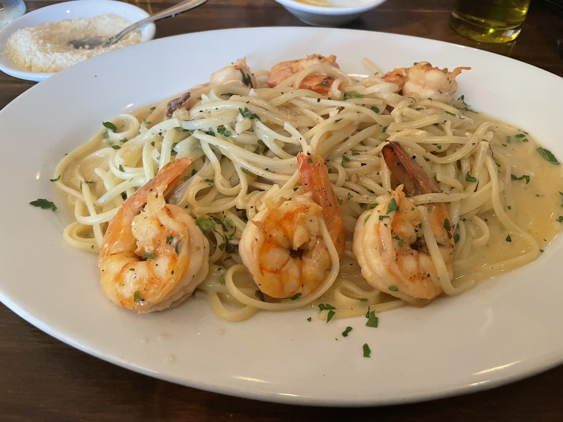 I ordered Shrimp Scampi and a glass of white wine. As foodie I rarely mention or complain about price in my reviews. I feel that you pay for great food and good experiences. (We also all know that everything has increased) Needless to say my entrĆ©e of pasta and shrimp wasnāt not as flavorful as I would have hoped, and my shrimps were overcooked. Disappointing at almost $40 bucks. (Full disclaimer it was $36). My friend order spaghetti and meatballs and also wasnāt blown away.