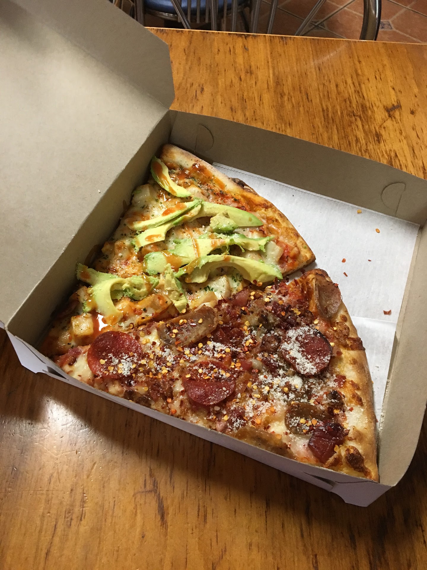 Freddie & Pepper's APPEARS that way but they actually have the slices to back up their argument. Maaaaaaaaan let me tell you this was some good pizza. The first bite like I had an entire meal on my plate. Geez that was a lot of flavor! I ordered a Chipotle chicken slice because I needed something spicy with some meat on it. I can't remember the first choice I wanted but it had bacon on it and I don't eat pork so it was the winner winner chicken dinner slice instead. It's very small and seats about 6-8 people with no standing room (which I prefer and like) and they do have a restroom. So they're pretty much winning on all sides. Oh yeah and they're way better than Joe's Pizza. I give it 4 out of 5 stars for not having as many pork free meat options to...
