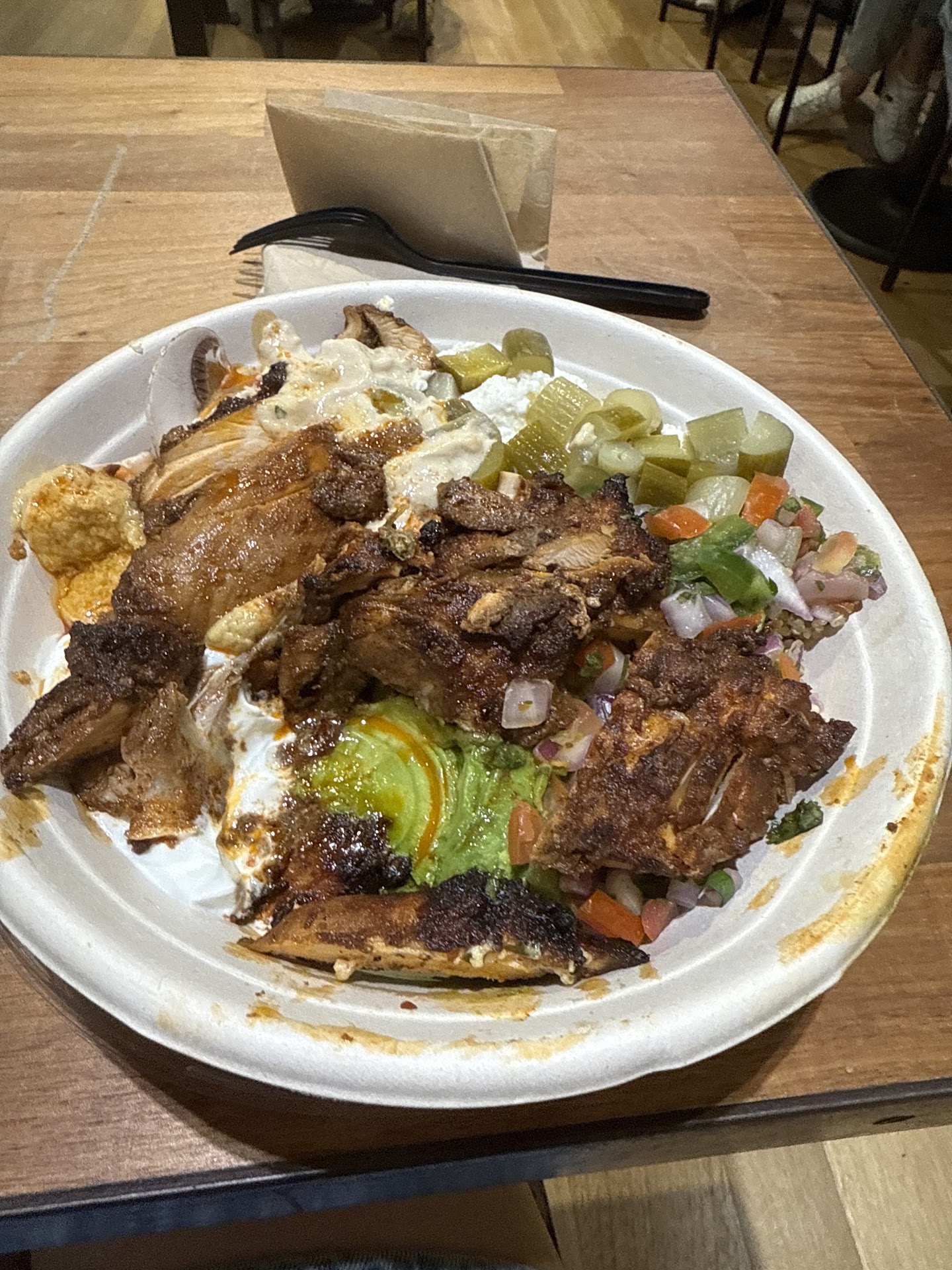 The food was bad this was my second time going and each time a huge disappointment. And I spent a lot of money on my food. The water and drinks are warm and the fruit is bad it's not fresh it has been sitting out in a warm refrigerator for days and so has the water. I received a water and did not realize the seal was broken before I got it until I went to actually open it the quality of the food is really poor to a point it can get a person sick. The first time I went the sour cream smelled funny and I did not really think anything of it because I ordered pick up and thought maybe I picked it up to late so it started going bad.This time I actually went into the store and ordered my food so it was supposed be fresh so I thought the food looked good besides the steak which still had blood in it. I did not realize this until the guy was cutting the steak and I put it in the bowl really fast when I turned my back for a second. So I ordered the steak with quiona sweet potato and mac and cheese. Unfortunately you can't taste test and smell the food before you buy it. So I finally paid for my food and as I made my way back to my job and finally got a chance to open the lid of my food I smelled something that smelled spoiled and discovered hair entangled into the grains of my quinoa. And along side that bloody meat. However I returned to work and I was to far to head back and on the clock to return to the store and get a refund for my purchase. I called and explained my situation to the manager and she apologized and reassures me that every thing is made fresh we then exchanged our names with one another and she offered me store credit.Which I don't think that I will be using anytime soon. I would zoom in to see the hair because it's a sliver white color. I strongly feel like I was severed food that was a week and a half old...