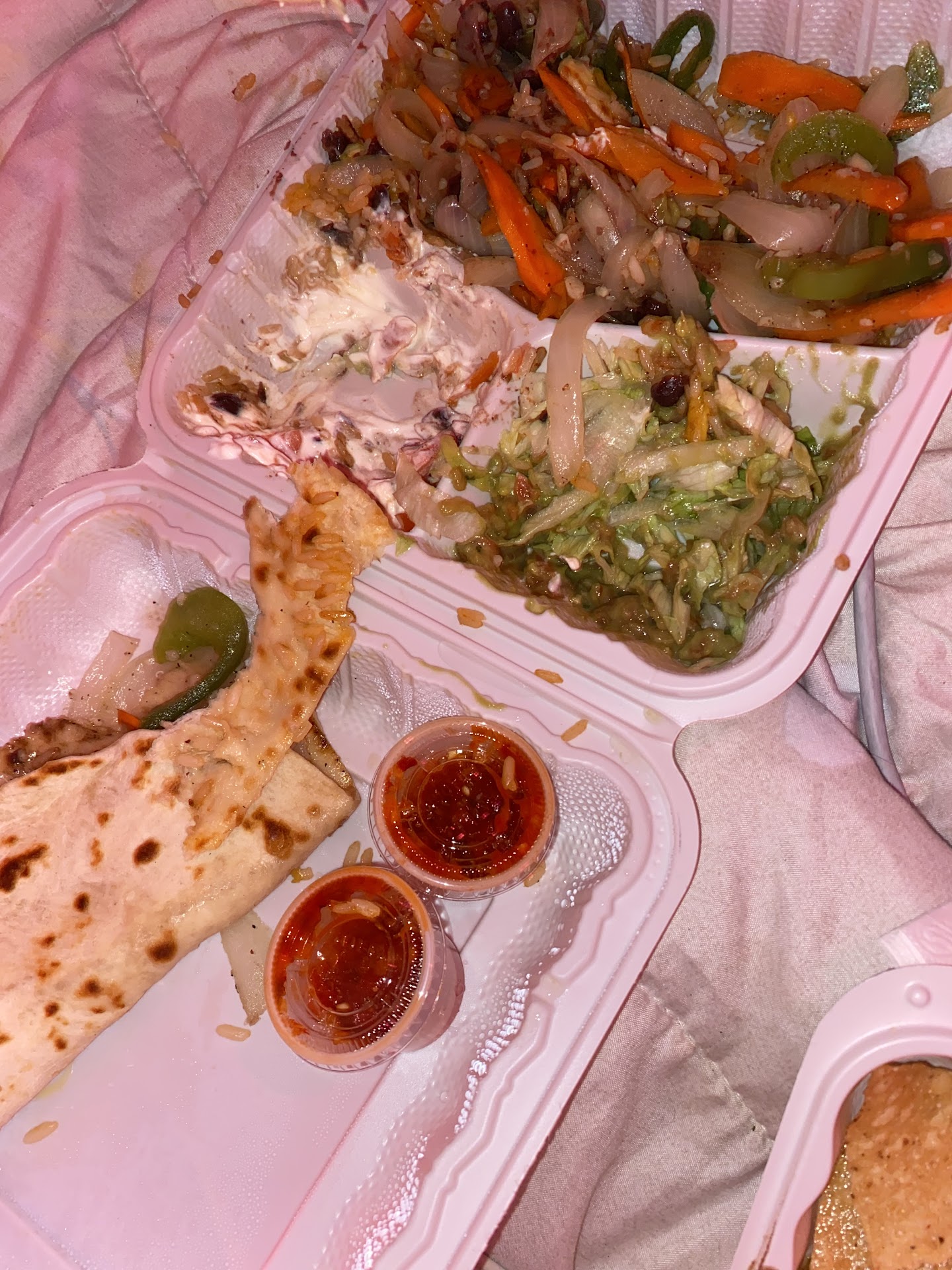 Seafood burrito not even with an actual tortilla⦠is that pita?! No other seafood other than shrimp and still charged $13 for what should have been more variety. Black beans actually burnt if thatās even possible..?
