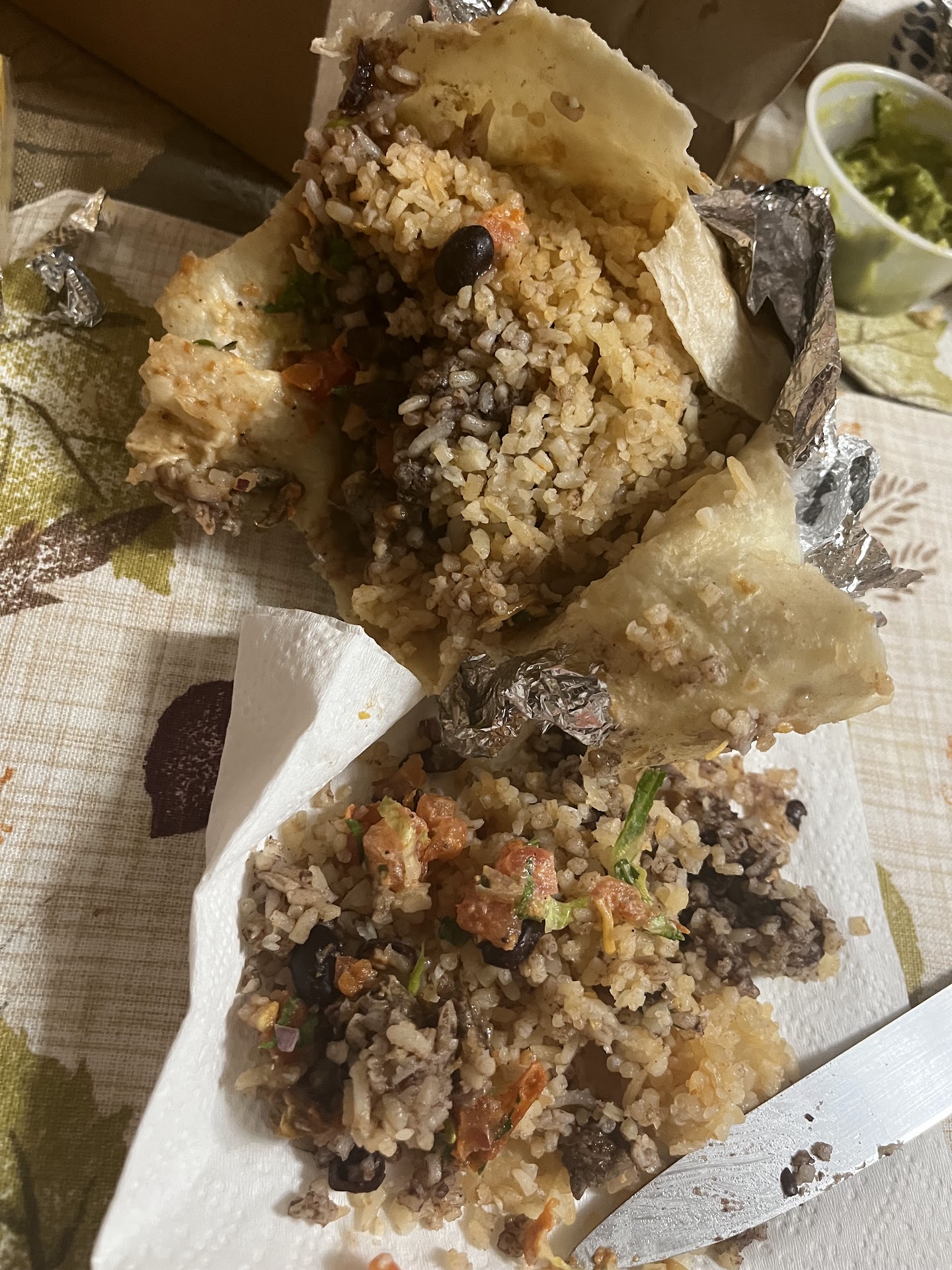 Ā Ā Ā Read moreOrdered delivery, it was not so good, I mean yea you canāt beat the price $10 for a burrito is amazing but is it really worth the cheap price that you donāt get taken to flavortown? In my opinion no, I wasnāt expecting much since the price is so reasonable but I was at least expecting some flavor and well it had 0, on top of that the rice tasted pretty hard and stale, and it was majority of the burrito, the best thing about it was the guac and at least they werenāt skimpy on that, I give them two stars for the edible factor, yes you could eat it especially if youāre on a budget, is it good though? Heck no, is it disgusting? Also no, but hey as they say āyou get what you pay forā but tbh Iāve had cheap burritos that were still more flavor and fresher than this, I made it halfway and then I was like yea no I canāt do it, I really tried but I just like flavor...