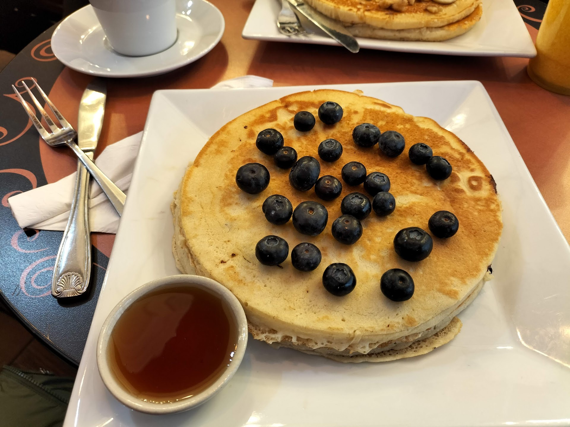 After reviewing their Google profile and seeing maple syrup I asked again to hear "yes all pancakes come with maple syrup"