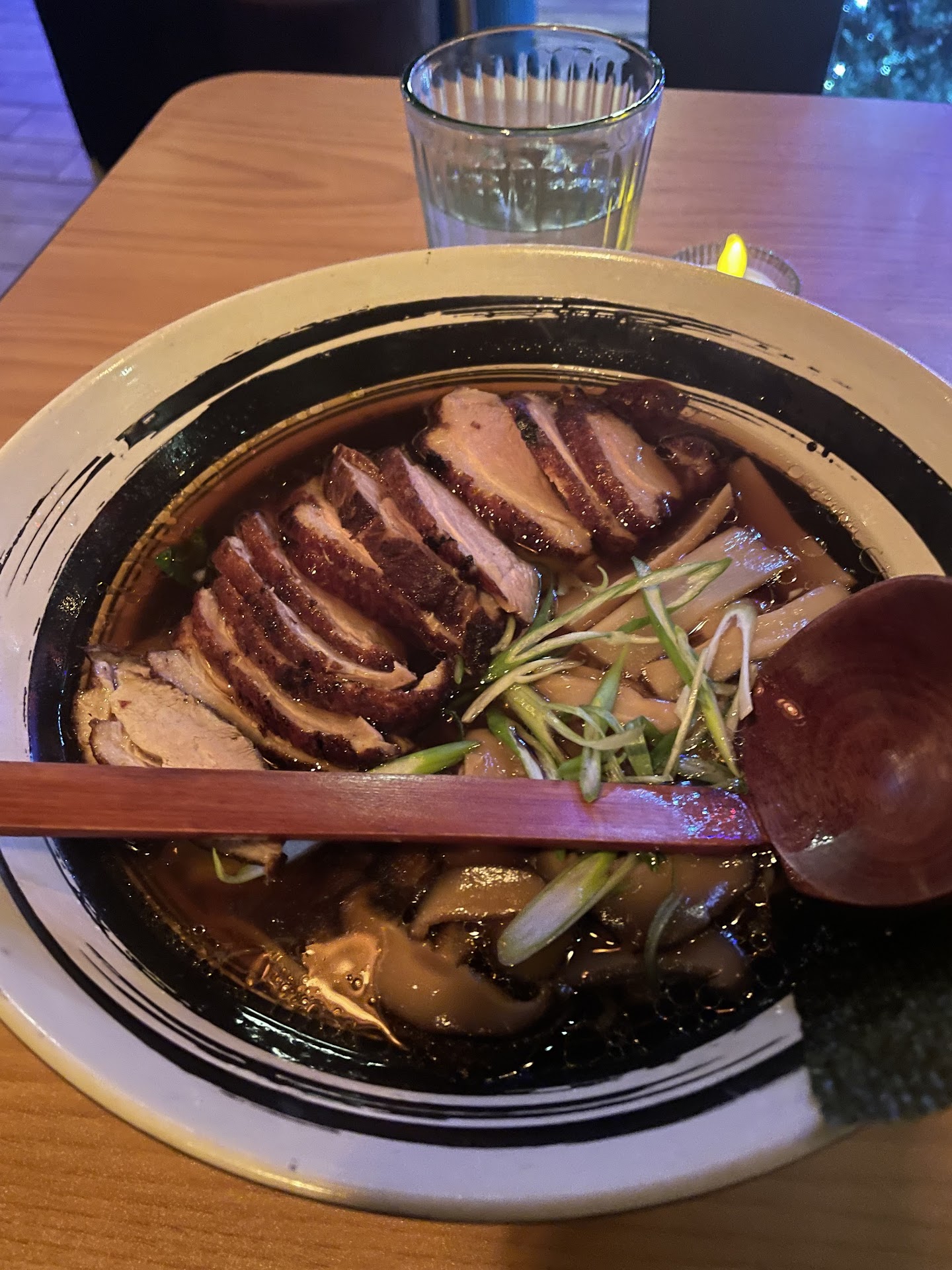 Nice servers Tasty broth Good pork belly Fresh interior (newly painted, nice holiday decorations)
