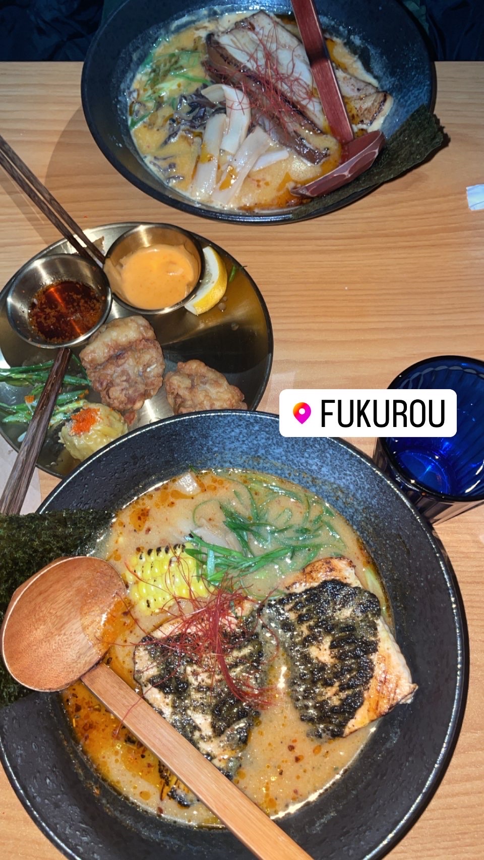 Read moreOrdered the spicy salmon miso ($22.95!, based on waiters recco) and the salmon came out and it was huge and impressive. But upon eating it, it was sitting in hot broth, still cold, overcooked, dry, and unseasoned. I asked for a new one thinking it was just a bad batch but it came out a second time (5 min which for a thick salmon filet is not enough time to cook) less overcooked but more cold. The salmon must be prepoached and then microwaved. Other reviews have mentioned a low quality noodle texture and I thought they were being dramatic but I have to agree. The texture was like overcooked packaged ramen with barely any chew. I hate to leave a bad review, the staff were all very NICE, but for the price I would at least expect the salmon to be fresh and noodles cooked correctly. Also got the pork and it was a large piece but it was so dry and tough it was difficult to bite into. To add scallions to ramen it was $2, you best believe I rationed the scallions on the chicken karage garnish. Other than that the chicken karage was good. (Update: woke up with food poisoning, please cook the salmon to temp this can make...
