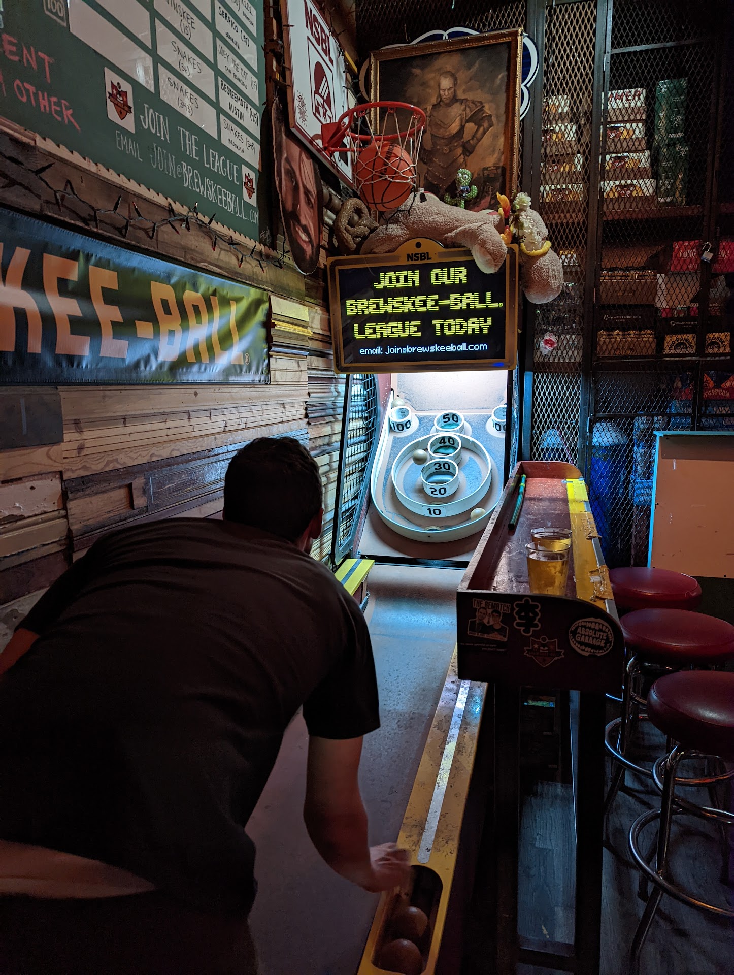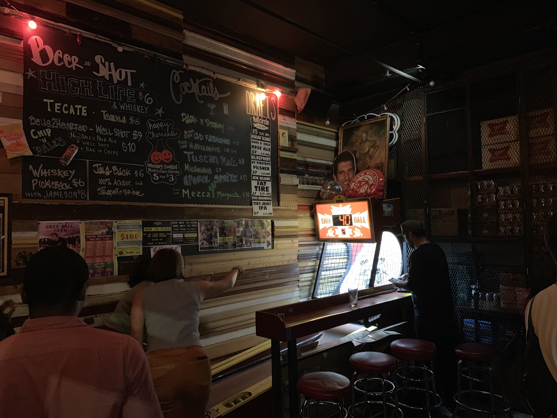 We stopped by on July 4th with my husband's brother, sister and her boyfriend. To say the bouncer was unfriendly would be an understatement, but hey, maybe he was having a bad night? We walked immediately back to the skeeball area in the back because my husband's sister had never played before and we were pretty excited. I'm sure it's bad form not to buy a beer first, but we would have happily gone to the bar and bought a round—except that the second we stepped into the back area, the bartender immediately turned the music up by about a billion decibels (in the back area only). The message was pretty clear: Leave.