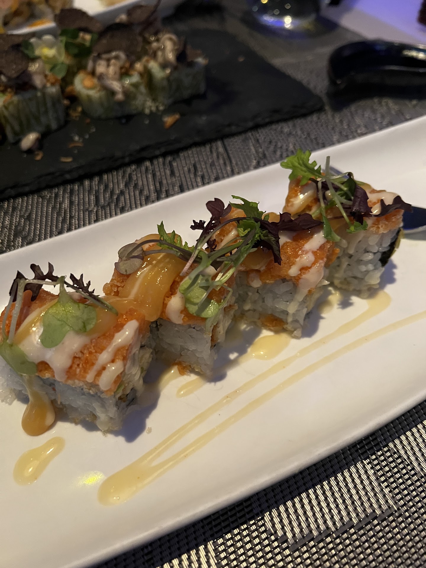Read morePretty good visit! The service was great and most of our dishes were delicious. We tried some new things and left satisfied. The Samurai special cocktail was particularly good. My ONLY complaint is that one of the specials, the burgundy mushroom truffle roll, did not taste like truffle at all. The mushrooms were good and the roll itself tasted fresh BUT the truffle taste was lacking. And the shavings on top of the sushi smelled like dirty dish rags and I had to remove them because the smell was so strong it was messing with my appetite and the whole meal. I’m a HUGE truffle fan so I tend to have it quite often and I’ve never had this happen before. Not sure what happened here but .. otherwise, the food was great. Will be coming back but likely won’t be having truffle...