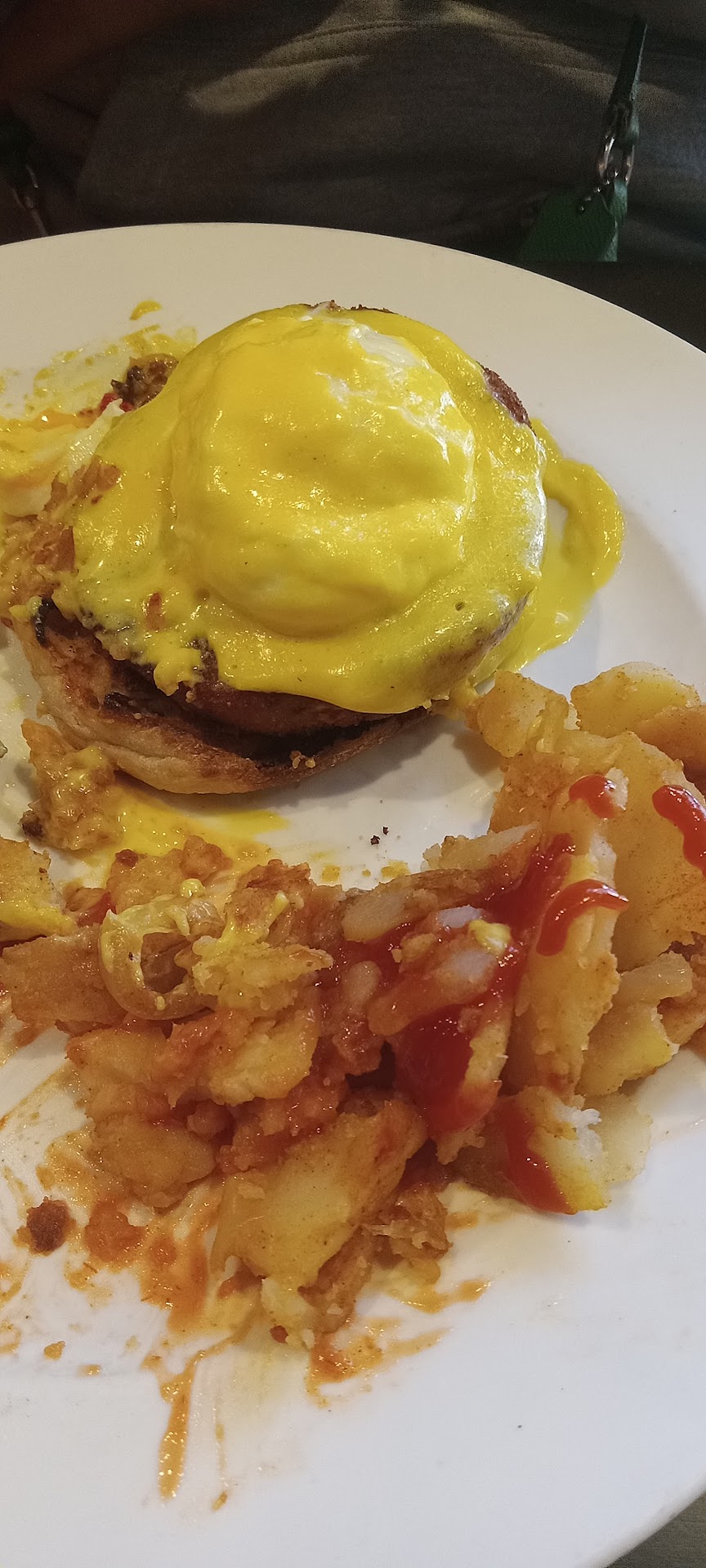 My food was packaged well and arrived warm. It was obvious that the burger was not fresh. I'm not sure why they charge so much for a frozen item not even made in-house, but anywho, it was overcooked. Also, it did not come with cheese and onion as advertised, only lemon wedges and pickle in a side, and the lettuce/tomato that I paid extra for. I didn't complain about this though because I realize that seafood is not this restaurant's specialty. Also, I ordered fish delivery, which I know can be hit or miss. Honestly, my issue was that there were no fries. It came with a mini sauce-sized container of coleslaw, 9 ketchup packets, plastic utensils and napkins for two, but no fries.