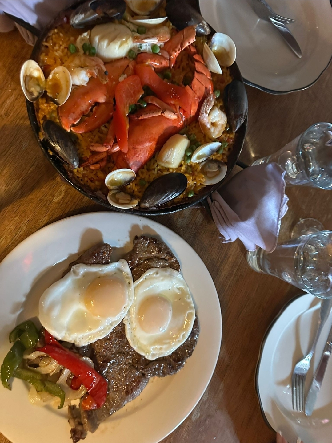 The menu has a variety of classic tapas and seafood options that are great to share. I loved the complimentary bread that was served ahead of our meal. We ordered several dishes, including the pulpo a la Gallega, which was cooked perfectly and had a soft buttery texture. The datiles rellenos were so good, and if you love sausage, definitely try the chorizo a la plancha. My friend got the pargo a la cazuela, and it was just ok. It was too bland and would have been better with additional seasoning. We left this place completely stuffed and satisfied with the great food and service. Looking forward to...