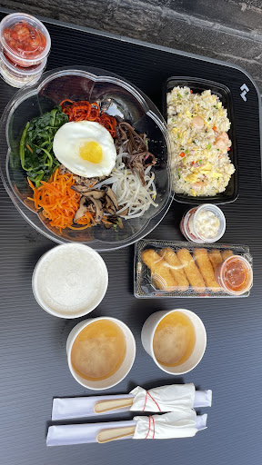 The neighborhood where this place is located is not the safest, but when it comes to food, it is definitely worth a visit. The food is excellent: fresh ingredients, everything cooked with care and attention to detail. We tried the bibimbap: a classic mix of vegetables, meat, and a perfectly fried egg on top. The balance of flavors and textures was spot on. The shrimp fried rice was also great: aromatic, fluffy, and not greasy. The side dishes were impressive too: crispy rolls, nicely spiced sauce, and hot, flavorful soup. Portions are generous and everything is presented neatly. You can tell the kitchen here is made for people, not just to tick a box. If all you care about is food, this is an excellent spot. If the neighborhood worries you, getting takeout is a...
