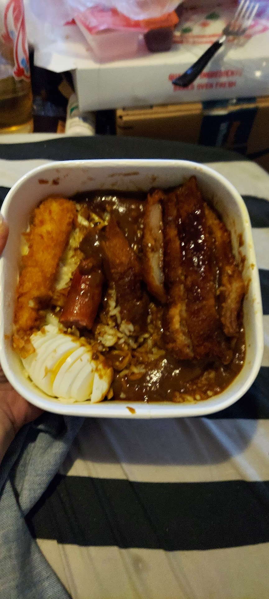 The actual food itself was quite good. The curry sauce was so delicious I ate all the rice too - which is unusual for me. The portion is good and it carried heat well all the way back to the hotel.