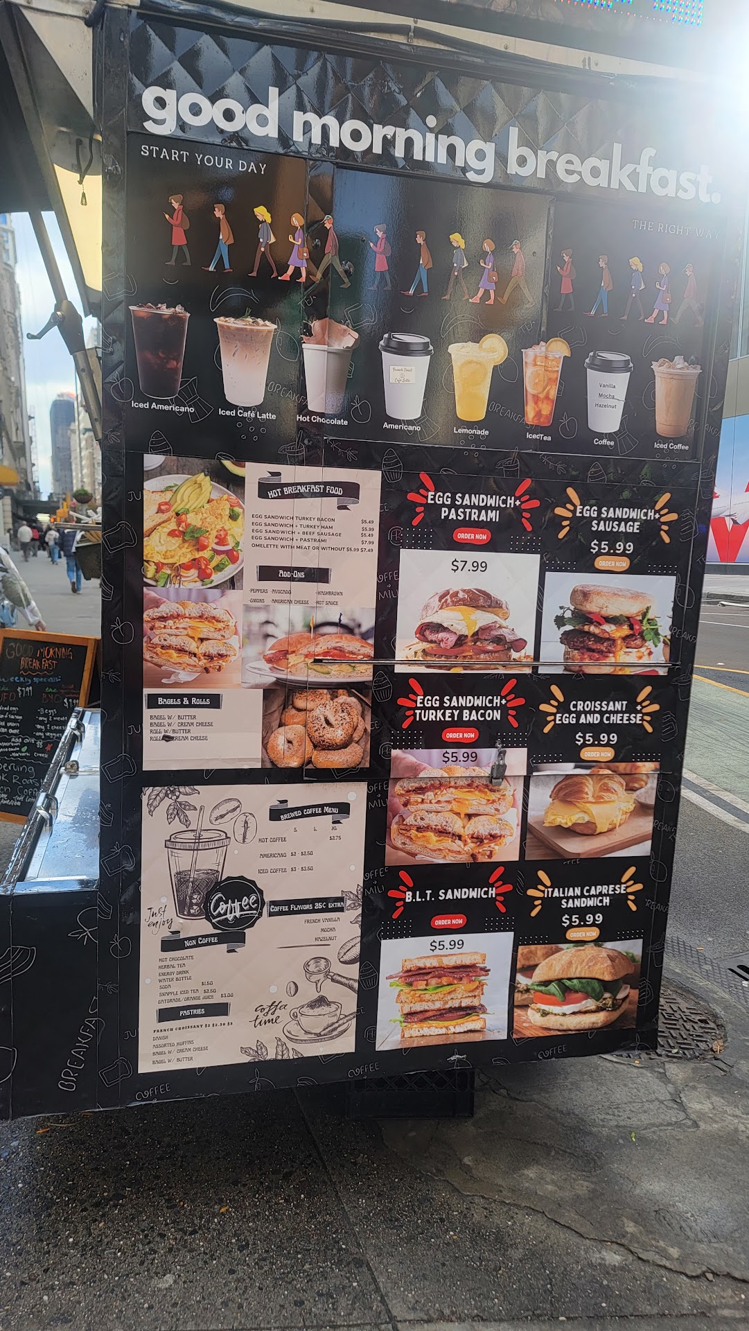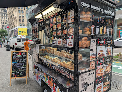 Read morei mean… ugh so good. we were back in nyc after a hiatus and staying at the virgin (kind of a dead spot in terms of food etc compared to the rest of nyc) and all i wanted was a solid bodega and an iced coffee. miss the breakfast sandwiches and iced coffee from bodegas more than almost everything else about nyc. ahhh this was it!! so good and i mean better than the bodegas i used to go to. we got coffees, bfast sandwiches with avocado - the splash of hot sauce was perfect. so great and the proprietor was awesome. we had breakfast there four days in a row. just impeccable. i am envious of the people who work near this delicious cart. thank you for making our nyc stay...