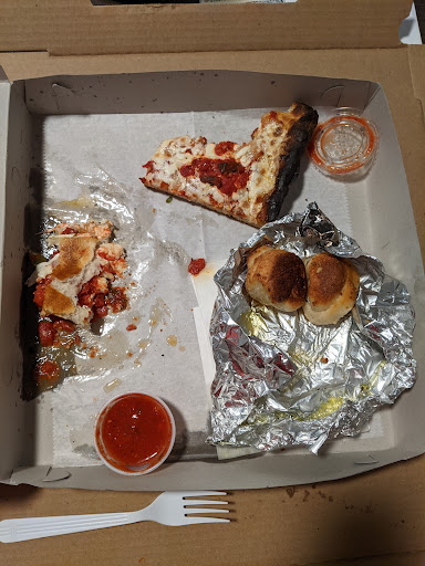 Read moreThe place is new and very clean, everyone was nice and friendly and the garlic knots are decent but the pizza was not good at all. The sauce tasted like it came out of a cheap can, the New York style slice was drenched in oil to the point where it was soggy and falling apart but the crust was okay, the sicilian slice was better but the crust was burned to a crisp and it tasted burned. Not only is the pizza not well made, it is very over priced. I paid $11 for two slices and garlic knots. Also I have no idea how they got so many reviews when they just opened, regardless if the pizza is improved and the prices are lowered it will be a...