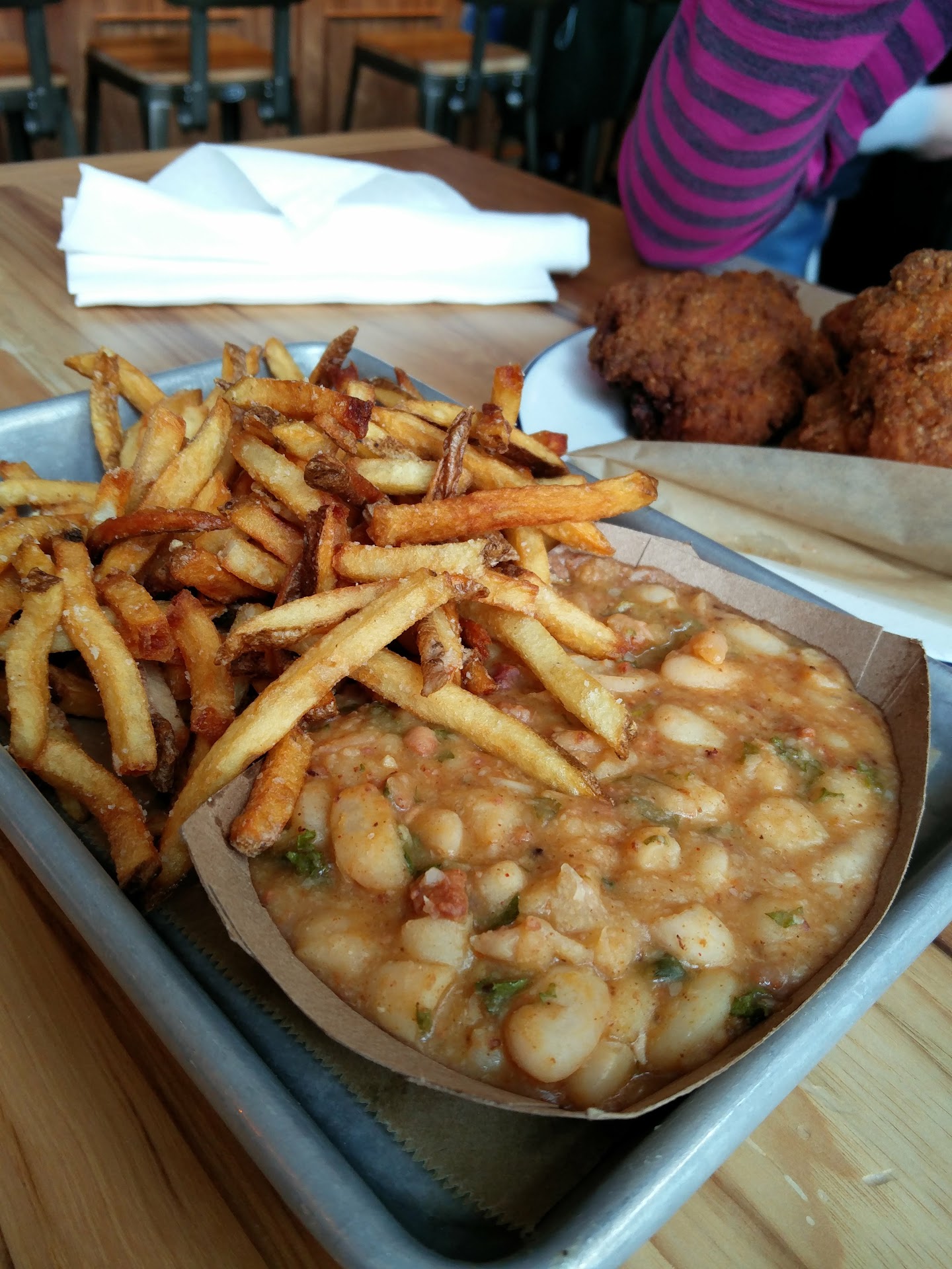 Read moreGreat environment. Bright and airy, open space. The food though all have some issues. Had the Fried Chicken with two sides, beans and fries, from Flip bird. The Chicken was nicely fried, with crunchy exterior and juicy interior, but was way too salty. It was the same with the fries, way too salty. The beans with chorizo was great, however. Tried to order the crab cakes from Crabby Shack, but apparently they didn't have the batter ready so it wasn't available. Had their crab taco and shrimp taco instead. DIdn't care for the tortilla at all, it was kind of half fried, so it was chewy and not very good. The crab filling was excellent and the...