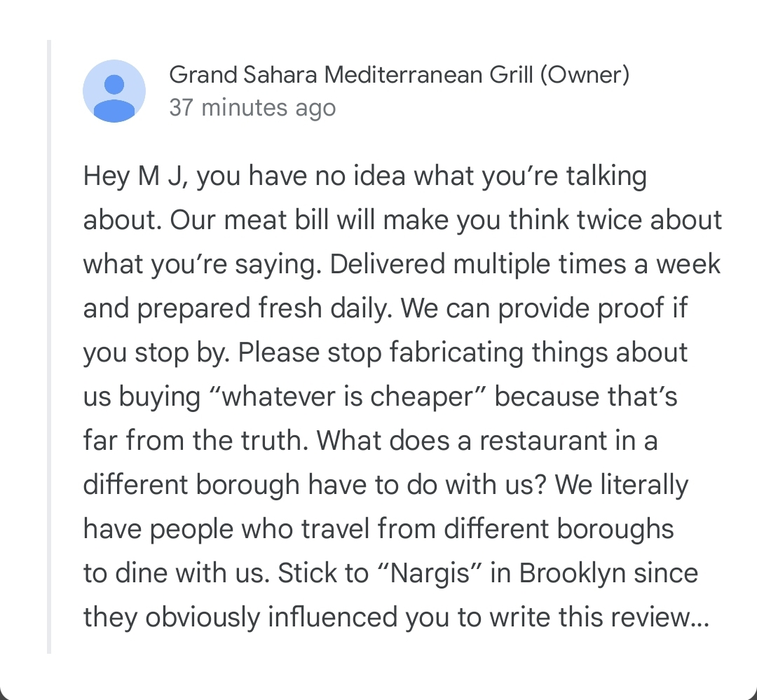 Edit: Bumped down to 1 star. Seems like customer is the b* here and the merchant is always right. I have attached their response in the image. The person responding to reviews is so aggressive and has no place in customer service industry. If you can't handle criticism from your guests, you have no business running a restaurant. If I were in food industry, I'd read every single review and use them to improve my service. It's free survey that others have to pay for. You're literally being told what the issue is and you chose to attack me instead of owning up to your weaknesses and improving.