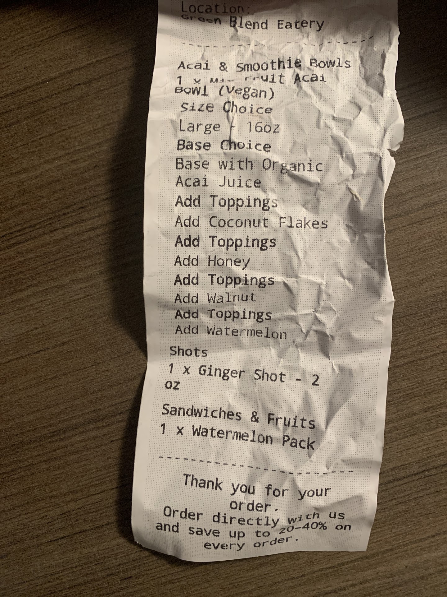 Read moreso happy that this place actually did açai bowls and also just plain smoothie bowls— I love this type of food, it’s my favorite, but sometimes I have a bit of a bad reaction with actual açai. I’m MILDLY allergic to like two fruits, neither of which are in these types of bowls but idk, there might be something in the base of most bowls that I’m unaware of— it’s just an itchy throat sort of reaction, nothing serious, just not fun at all.