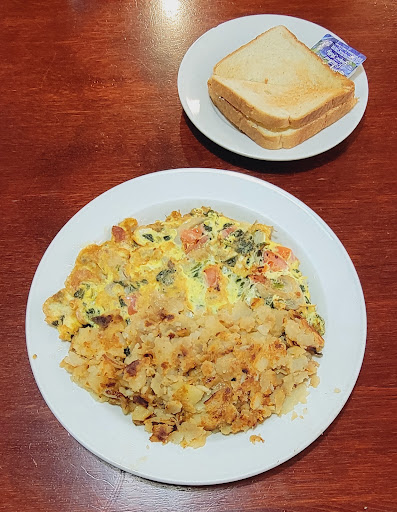 Read moreI am only basing my review on the diner alone as I didn't check out the sportsbar on the other side of the restaurant. Looking at this diner from both the inside and outside, you can see that this place needs some major remodeling. Everything on the inside looks quite dated, but overall, it is clean. The service was pretty good, and my food came out fast, in spite of me being the only person dining at the time. I ordered the veggie omelet with home fries, and it was not bad. The only thing is that they over buttered the toast where it didn't melt, and it left a bit of a greasy taste in my mouth. They have a pretty decent sized menu with reasonable prices. From what I can see, the sportsbar is pretty hopping early in the morning during breakfast time. I guess it is true...it is 5:pm somewhere. Overall, I would come here again if I am passing through to get a quick bite to eat, just nothing with toast...