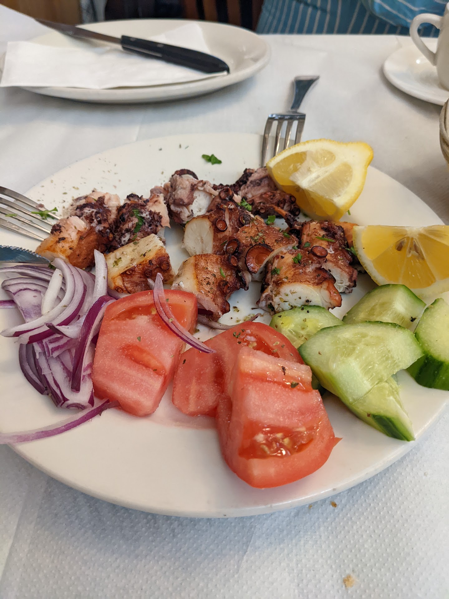 Read moreI've been here for dinner twice, both times a party of 4. Didn't make reservations, but we had no trouble being seated (it wasn't Friday or Saturday). We had fried eggplant and zucchini both times, heavenly the first time, just very good the second. Also the octopus both times--it is so tender and flavorful. My wife was inspired to ask whether they would make the liver and sweetbreads with only sweetbreads and no liver--they did and it was delicious. We didn't order it the second time only because our friends preferred something else. Both times we were replete after the "appetizers," and never got to try the fish--which is why I wanted to go there in the first place. The portions are very generous, at least for old folks like us, and we had leftovers to take home. The service is excellent and so friendly. The red wine is bad, but cheap, and good enough to accompany the food (and you won't be tempted to drink too much). Maybe I'll try the white with fish next time, or the Greek beer. This is my favorite restaurant in New York, a city full of fake and overpriced ethnic restaurants. Here they actually know and care enough to serve excellent food at a fraction of the price you pay for bad...