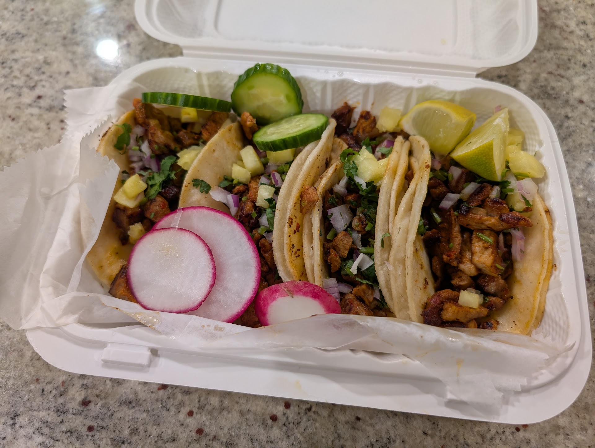 Read moreI hate to give a bad review to my people but I need to be honest. At first, I was excited to find this spot on our way out of Brooklyn and then when I smelled the tortillas wow, even more. Unfortunately, I didn't like the tacos. The girl cooking just grabbed some plastic containers with pre-cooked meats and started heating the meats on the griddle, first bad sign. Then she heated up the tortillas, which smelled great but ruined it by placing them on a dish a proceeding to add sweet corn, iceberg lettuce, bell peppers and whaaaaat??? That's not Mexican, never in my life I've seen this.
