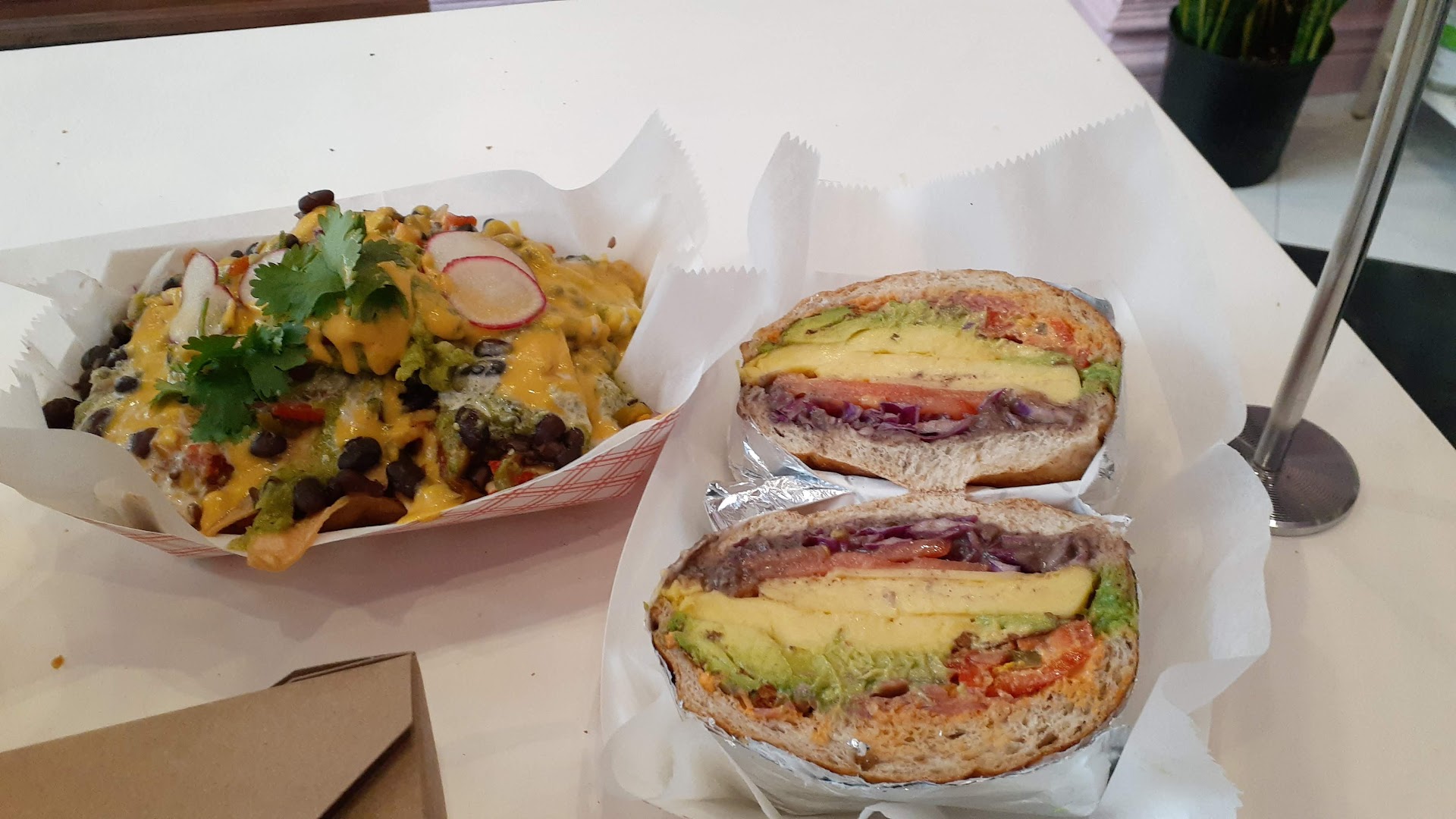 For sandwiches and other entrees, you walk to the back and there’s a bar/diner called Mekelburgs. They have vegan items from Guevera’s and also their own menu options that aren’t all vegan. I was told I could order pastries from this diner too if I just wanted to make a single transaction.
