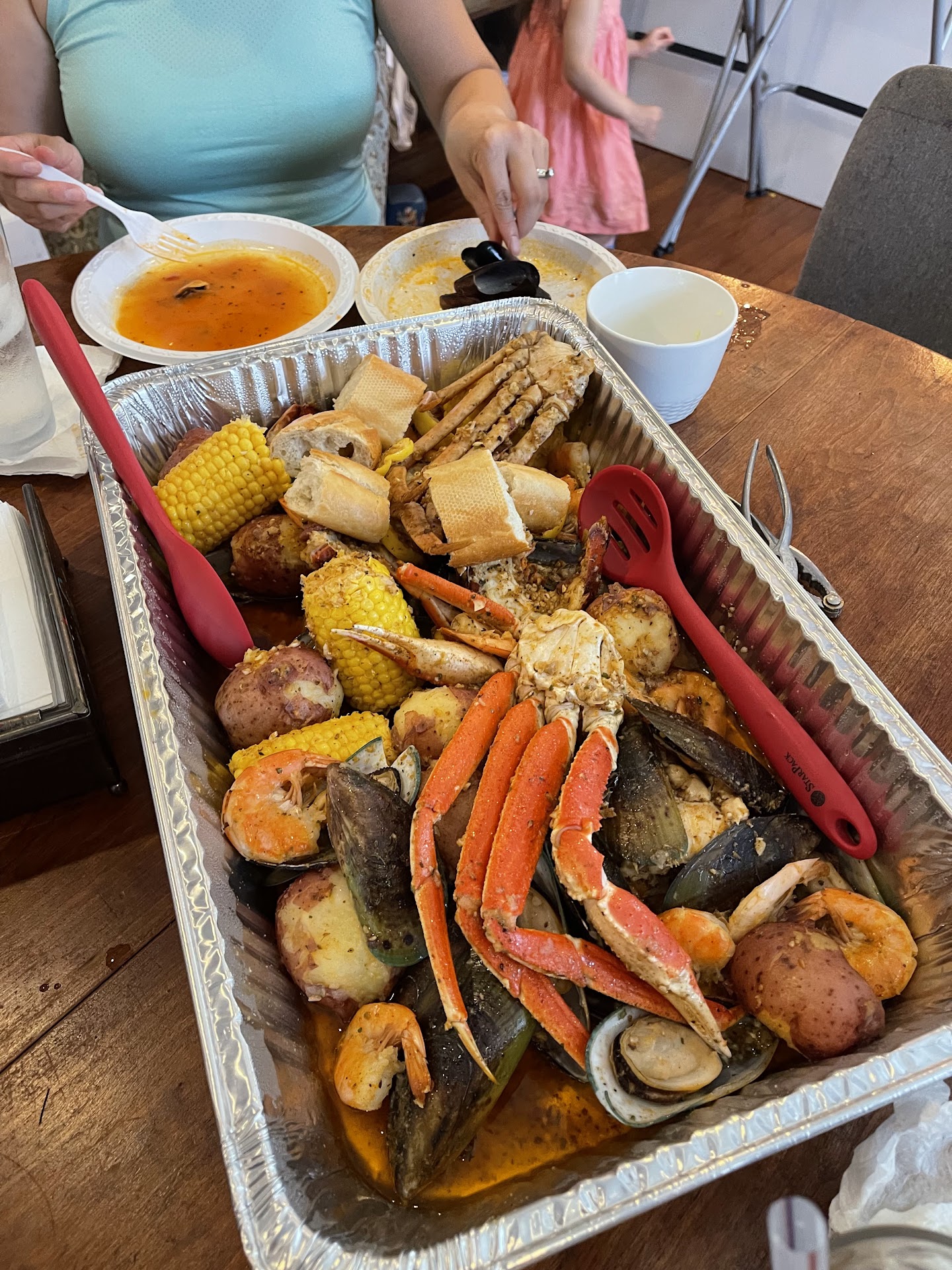Next the food. They try to present it differently by putting it on a broiling tray, bad idea. The sauce is at the bottom instead of a bag which means the seafood is just sitting on top of the sauce instead of soaking in it. That made the food get cold fast and it lacked flavor. I'm a fast eater and it was cold before I could get halfway through. Next was the crayfish. I swear they just boiled it separately and threw it on top because there was no flavor whatsoever. Zero. They were large though. But bland so I didn't even enjoy them. Snow crab had flavor but it wasnt as flavorful as other boils. I ordered a pound of king crab and they overcooked the hell out of it.