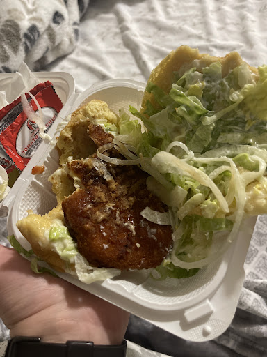 Read moreI ordered for delivery from uber eats. They took a full hour to put the order together. When I called them, they said we are making the order now. That was 1 hour after I placed the order. They forgot about my order. When I received the food, I wish I didn’t spend 1cent at this place. The worst food ever.i order a chicken over rice with white sauce. 1 spicy chicken burger and fries. The chicken over rice was smelly. Part of the plate smelled weird and part of didn’t have a smell and part of it smelled rotten. They didn’t add any sauce in the plate or in the bag. Only some ketchup. The fries were soggy and brown. It looked as if everything was microwaved. And the chicken sandwich was dark brown and burnt. None of the items looked like the advertising in the pictures. Not even the fries. The food looked like it was from someone’s fridge and was days old and microwaved. I felt...