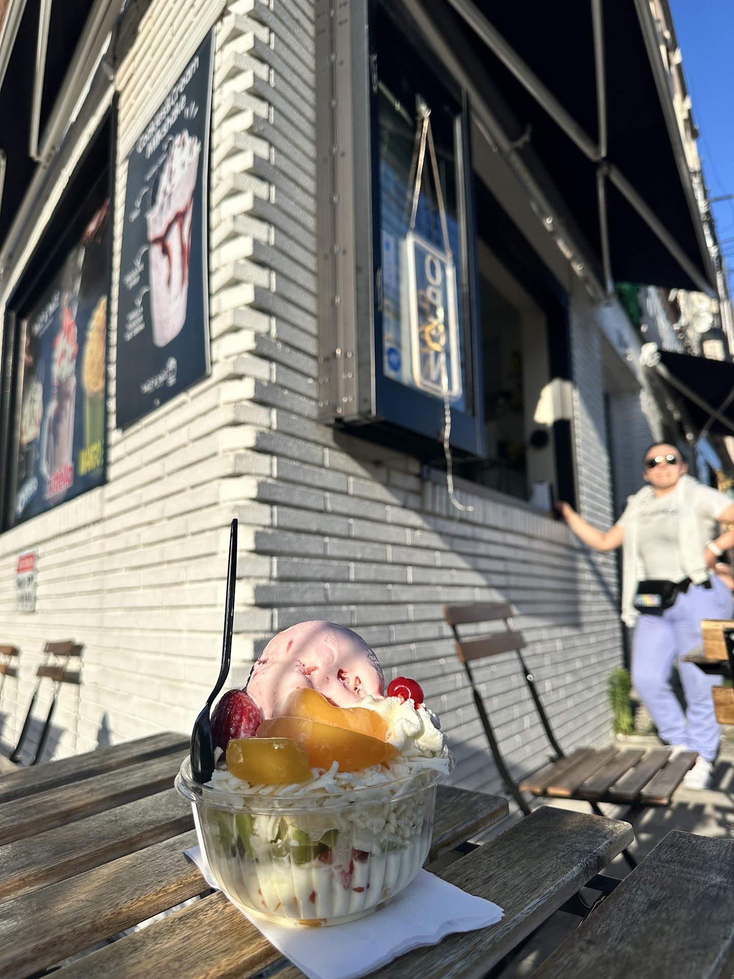I decided to try this place after passing by it daily, but it was a huge letdown. Every dessert was drenched in salty cheese, which completely ruined the flavors. The “special cream and peaches” was just whipped cream and canned peaches—nothing fresh or special!!!! upset my stomach on the very first try. 10 minutes later I ended up having a cup of liquid heavy cream with peaches🤢