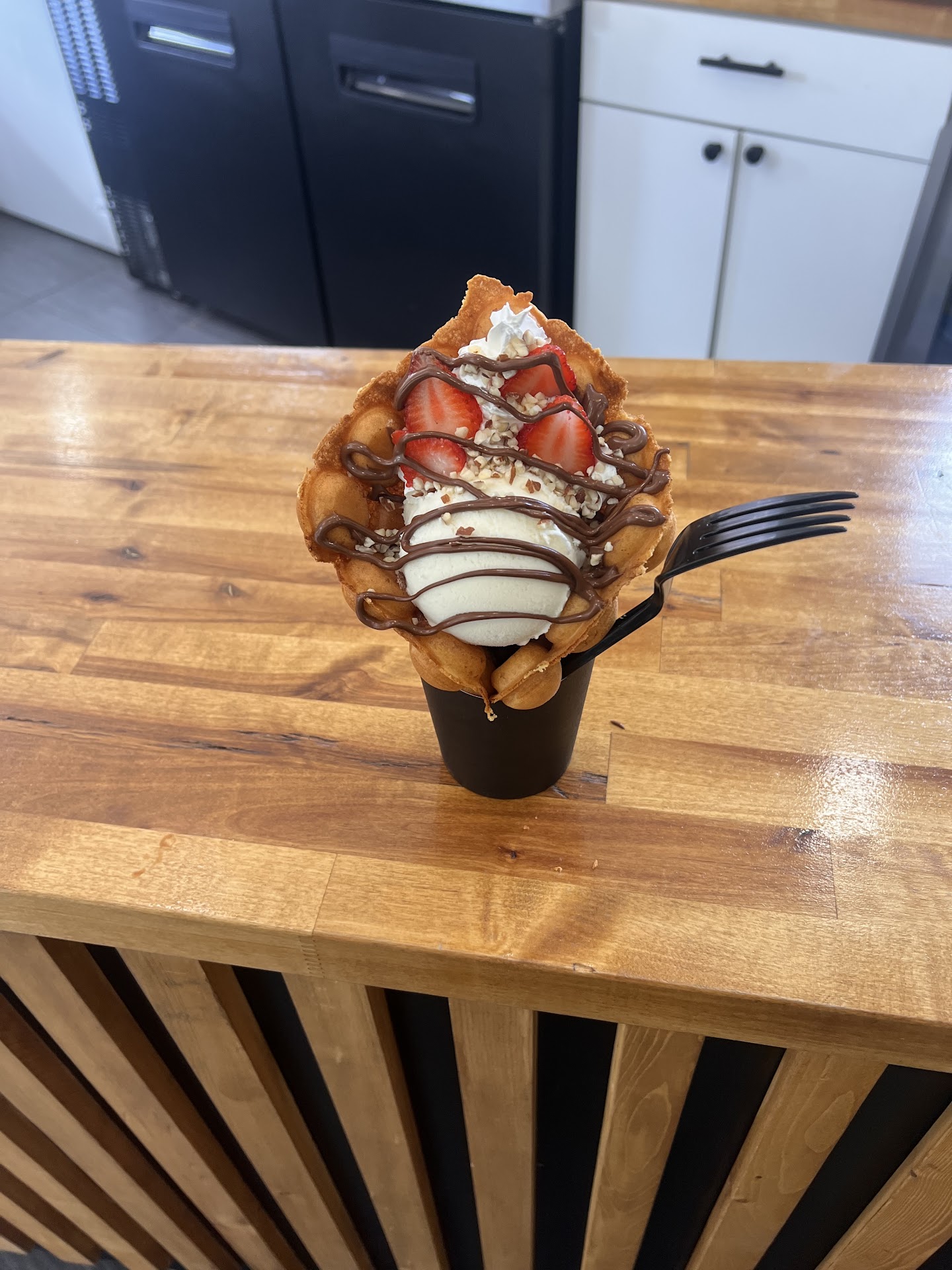 Read morethis place was outstanding. the waffles, the milkshakes, and the drink selection. the staff were super friendly and were focused. the inside was small, but cute. the energy in there was just immaculate and you’re hit with a wave of food vibes. Their specialty, the waffles, were amazing. The milkshakes were outstanding and not too sweet....