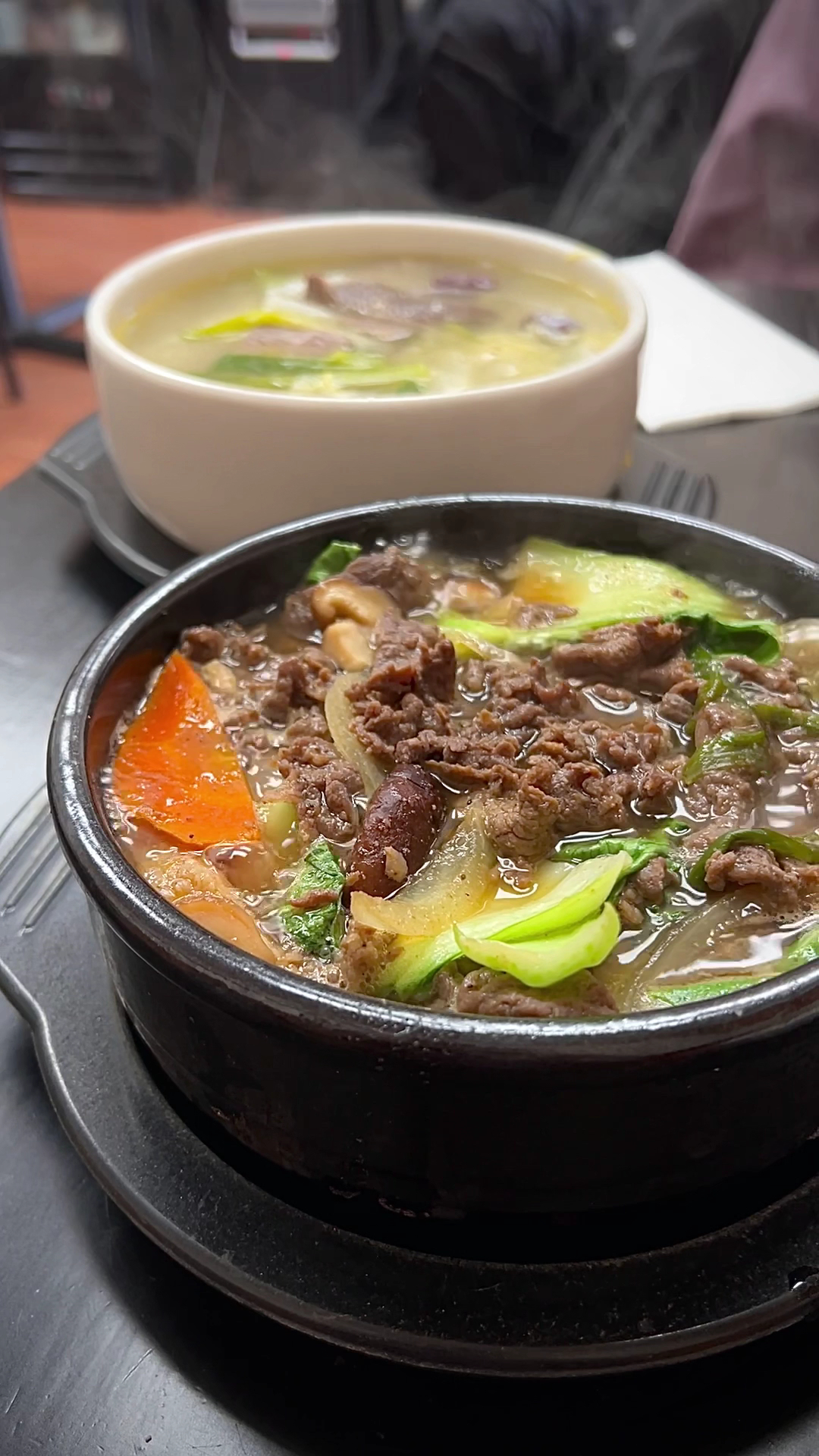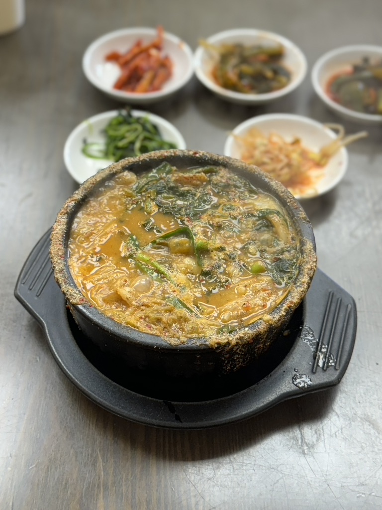 The dakgaejang (spicy chicken soup) was one of my favorite things. The broth is very flavorful and there's a lot of spice in it. They have some more traditional soups like the black goat or loach. So if you're in a soup and rice mood, this will hit.