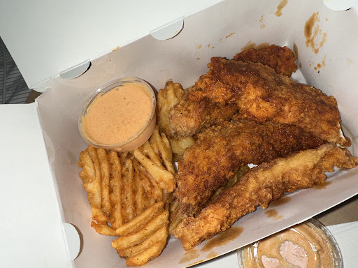 I opted for the Medium hot tenders, and let me tell you, the heat was fantastic – a genuine, flavorful kick that didn't just burn but actually tasted delicious. The chicken itself was incredibly tender and juicy, with a crispy coating that held up perfectly even with their signature sauce. Speaking of the sauce, it was the perfect complement, adding a creamy richness that balanced the spice beautifully.