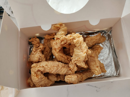 Read moreI'm so disappointed. I've been craving Korean style Fried Chicken for weeks. I decided to try 92 chicken because it was close and had good reviews. I got the eight piece tenders at $15 which came with a side of pickled radish. I asked the server for sauce and she said they don't have sauce for their tenders. It smelled fantastic and I ran home with my goodies. As soon as I opened the box I knew something was wrong. The chicken tenders did not look golden brown or crispy, they were a flat doughy color. Then as I suspected, they were not crispy at all. The tenders were rubbery on the outside. Strangely, the chicken itself was very dry. My guess is that they were fried earlier that day and were sitting around. I tried a couple but they are not worth the calories. Practical information. Seating is three bar stools at a counter, half of which were taken up by employees/family members. Won't be returning...
