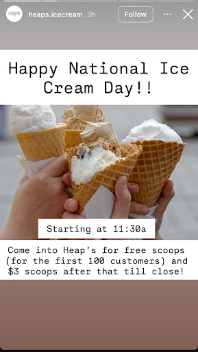 Read moreJust wanted to share a very disappointing experience at Heap’s Ice Cream today. My daughter and I stumbled upon an Instagram ad for free ice cream at this location, so we decided to stop by. The event started at 11:30 am and we were probably number 15 on the line. We were offered to either choose chocolate or vanilla ice cream outside or wait and be able pick any favor inside the store (or so we thought). At no point did the worker outside decide to share that we would have to pay for any flavor besides chocolate or vanilla. This was also not on the Instagram ad. After we picked our flavors, the cashier said that he would ring us up. It was at this point that we first heard we had to pay. There were no signs or mention anywhere beforehand that we would have to pay. Apparently this was a surprise to other customers on the line as well. This is just pure bad business. I am writing this not because of the cost but rather the principle. Why not tell the customer first? When another customer mentioned that no one explained we would be charged, the cashier simply shrugged and moved on. It was “National Ice Cream Day” so if you offer free ice cream, please be more specific about the stipulations. You lost many customers today as many vowed...