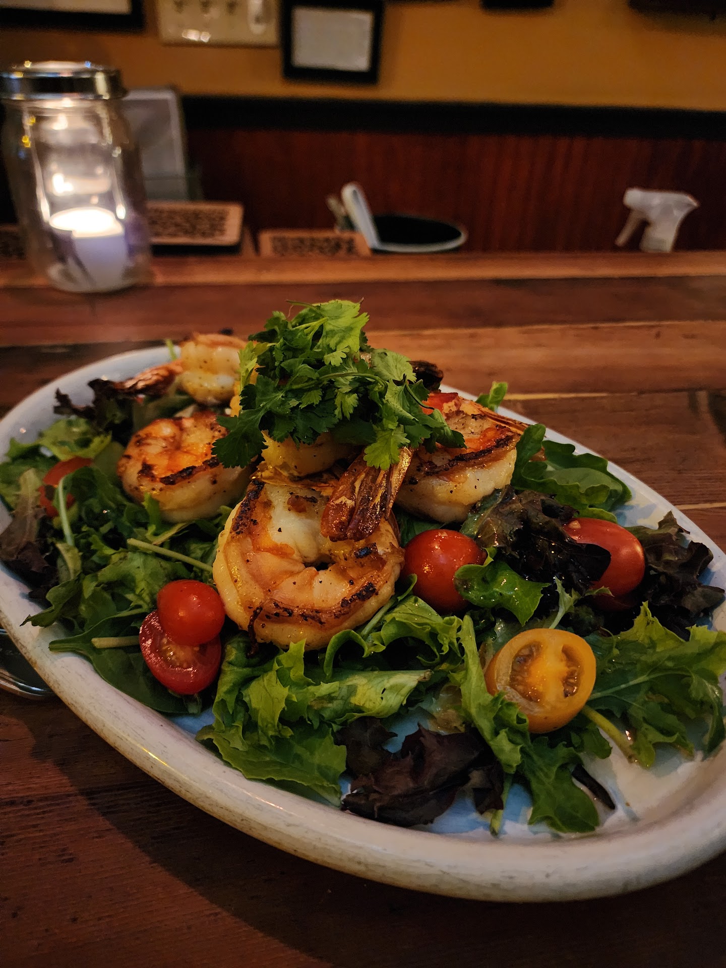 Great ambiance, little loud due to the size of the place, dim lighting, awesome wood bar and stools, lots to look around at. Music was playing, couldnt tell you what it was... mainly heard the conversations