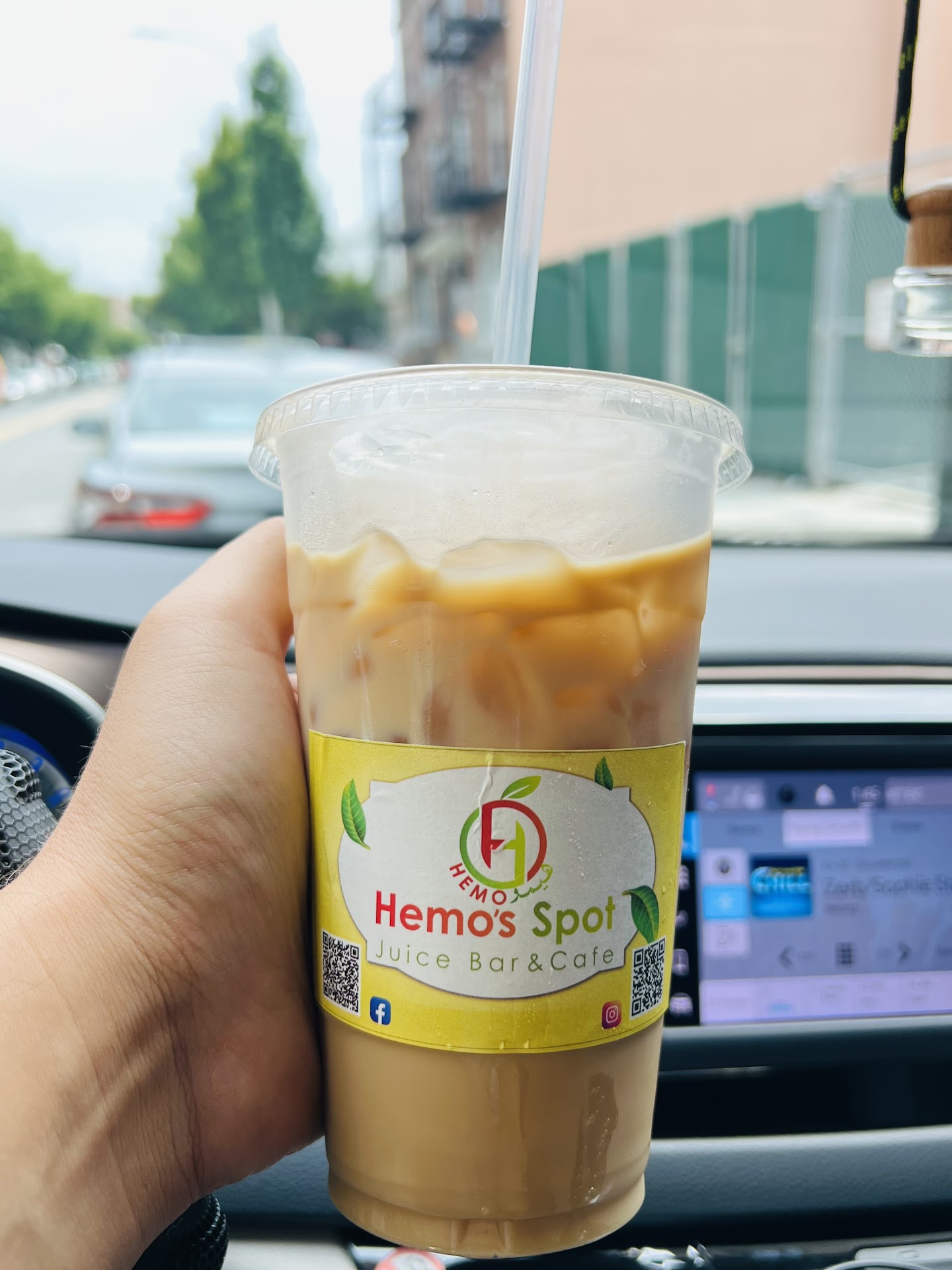 YEMEN 🇾🇪 Eat the World NYC review: Despite the fact that patrons inside Hemo's are usually families and pairs of men chatting while eating burgers and fries, the "juice bar" aspect becomes apparent when you check out the extensive list of some 150 juice options. Just about any combination of fruits and vegetables can be done here, and the blender is constantly humming as people come and go. This is one of two locations of the young franchise now open in Bay Ridge, with another in the Van Nest section of the Bronx.