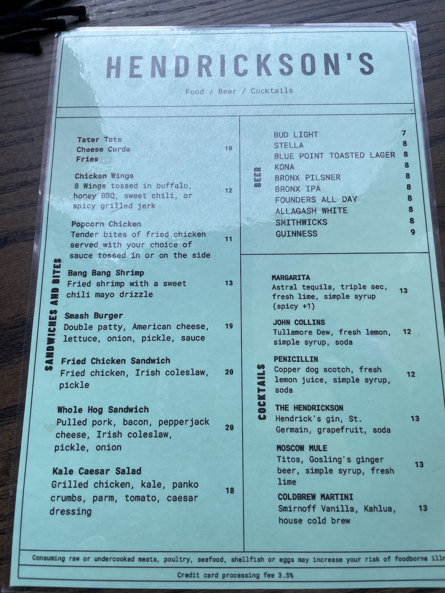 The crew at Hendricksonās are off with a BANG (and that includes their Bang Bang Shrimp)! The ālimitedā menu has everything you need - shrimp (as already mentioned), great wings, a rock-solid burger, moistly and deliciously flavored pork and (honestly) one of the best chicken sandwiches Iāve had anywhere. You would expect Irish pubs in New York to know how to pour a proper Guinness but, as we all know, thatās not always true. The gang behind the stick at Hendricksonās have made it a science! Perfect, proper pour in the right size at the right price! Iām a tough sell and I couldnāt be happier to have this new joint in my āhood! Thank You and Slainte...